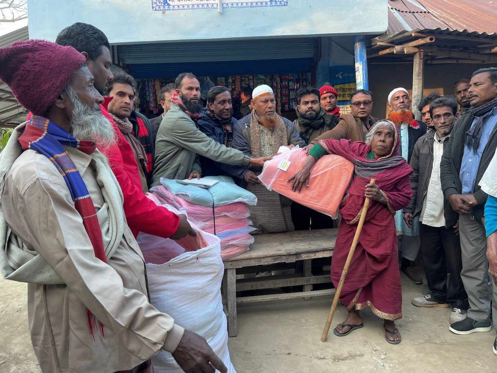 # মশিউর রহমান মানিক,দুর্গাপুর,রাজশাহী, রাজশাহীর দুর্গাপুর উপজেলা যুবদলের সাবেক আহবায়ক মো. চয়েন উদ্দিন শেখ এর উদ্যোগে শীর্তাতদের মাঝে কম্বল বিতরণ করা হয়েছে।