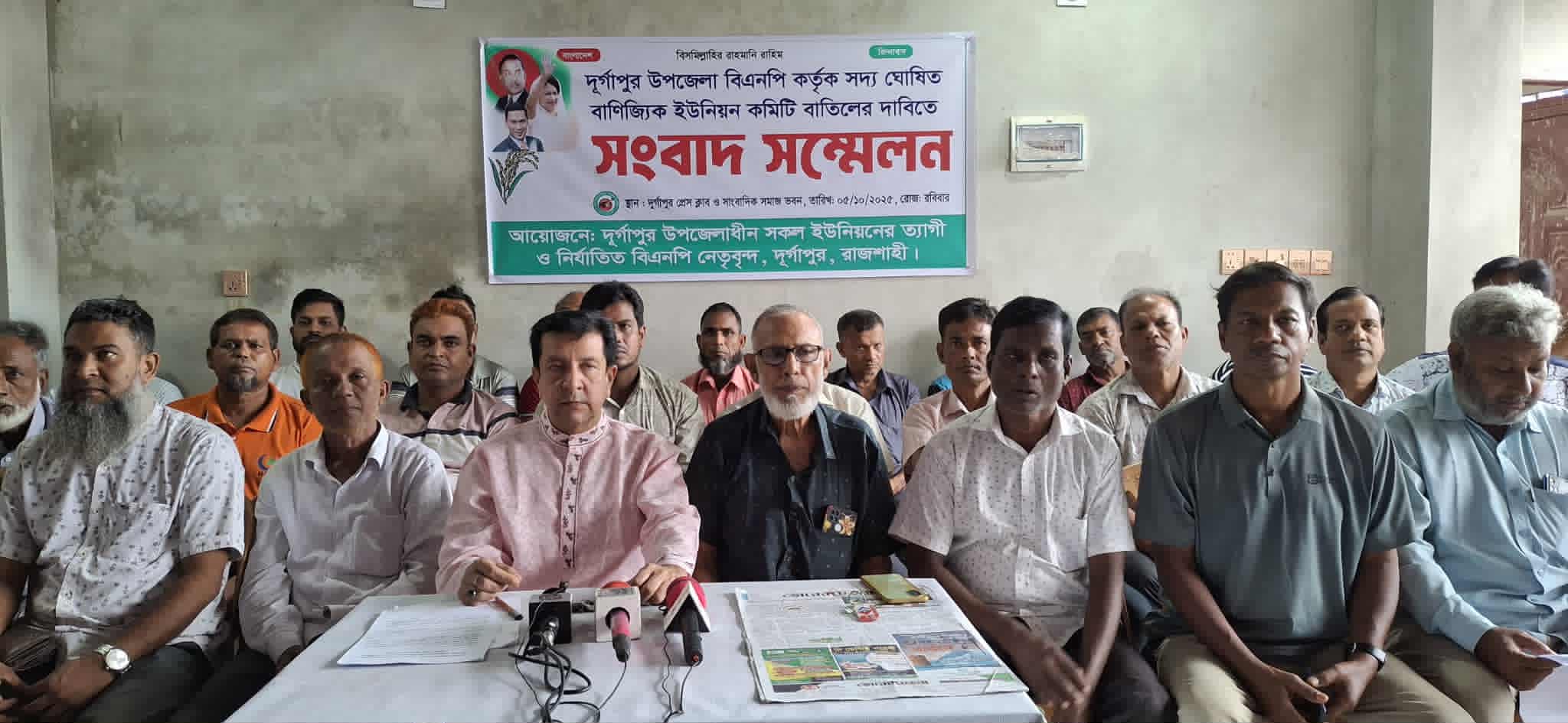 দুর্গাপুর উপজেলা বিএনপি কতৃক সদ্য ঘোষিত বাণিজ্যিক ইউনিয়ন কমিটি বাতিলের দাবিতে সংবাদ সম্মেলন