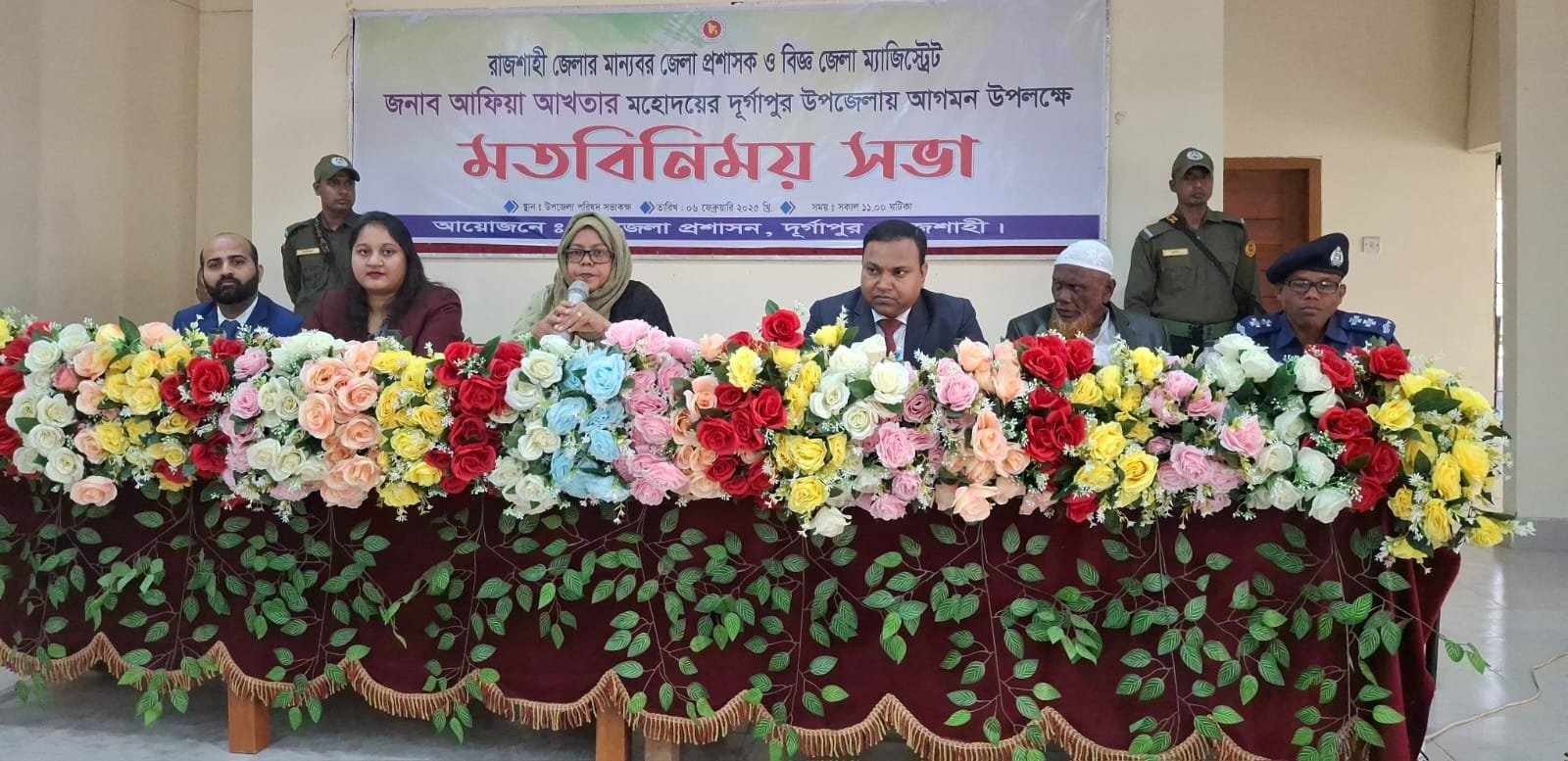 উপজেলা নির্বাহী কর্মকর্তা সাবরিনা শারমিন এর সভাপতিত্বে পরিচিত ও মতবিনিময় সভায় প্রধান অতিথি ছিলেন জেলা প্রশাসক আফিয়া আখতার। উপজেলা প্রশাসনের পক্ষ থেকে প্রথমে জেলা প্রশাসককে ফুল দিয়ে বরণ করা হয় । এর পরে উপজেলা পরিষদের ক্ষণিকালয় ওয়েটিং রুমের উদ্বোধন করেন জেলা প্রশাসক আফিয়া আখতার।