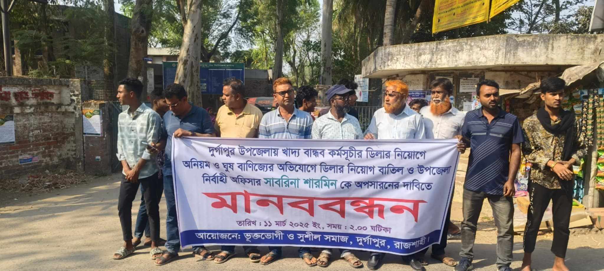 দূর্গাপুরে অনিয়মের অভিযোগ তুলে ইউএনও’র অপসারণের দাবিতে মানববন্ধন