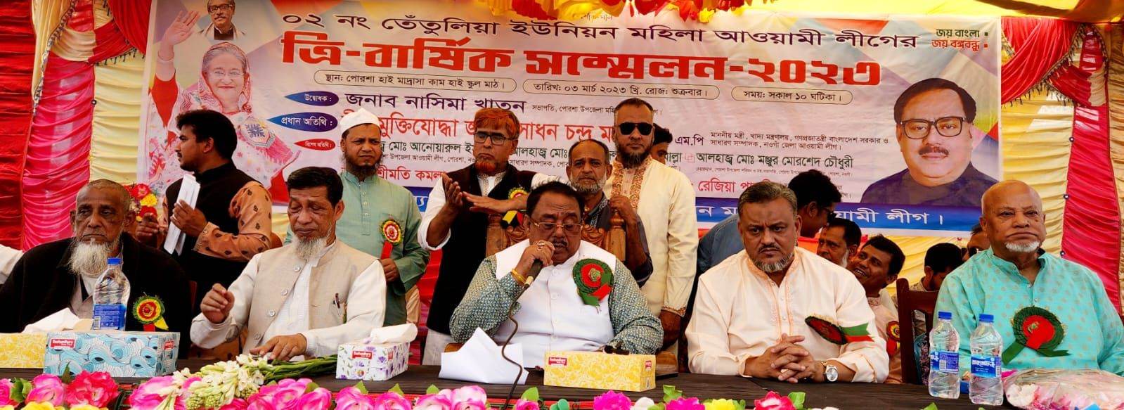 তেঁতুলিয়া ইউনিয়ন মহিলা আওয়ামী লীগের সভাপতি রেজিয়া পারভীন এর সভাপতিত্বে অনুষ্ঠানে নওগাঁ জেলা আওয়ামী লীগের সিনিয়র সহ সভাপতি আব্দুল খালেক, পোরশা উপেজলা পরিষদ চেয়ারম্যান অধ্যক্ষ শাহ্ মঞ্জুর মোরশেদ চৌধুরী, উপজেলা আওয়ামী লীগের সাধারণ সম্পাদক মোফাজ্জল হোসেন মোল্লা, এবং উপজেলা মহিলা আওয়ামী লীগ এর সভাপতি নাসিমা খাতুন বক্তৃতা করেন।