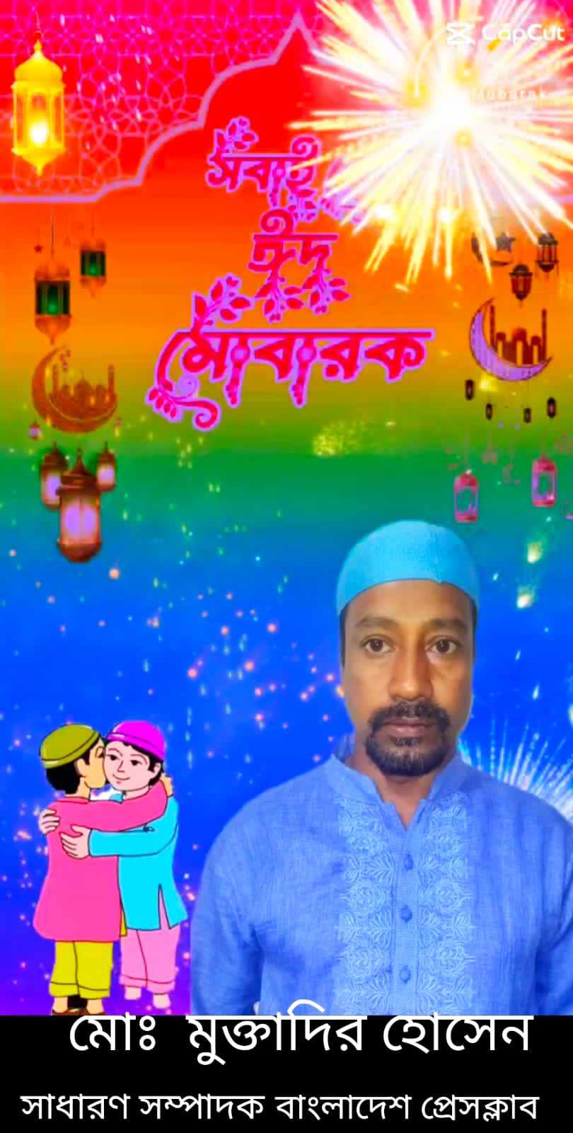 ঈদ সব শ্রেণী-পেশার মানুষের মধ্যে গড়ে তোলে সৌহার্দ্য, সম্প্রীতি ও ঐক্যের বন্ধন। আমাদের পরিবার-পরিজন বন্ধু-বান্ধব পরিচিতজন অনেক’কেই আমরা পরিবারের সদস্য কারো বাবা ভাই বোন আত্বীয় জ্বজন হারিয়েছি,-তাদের আত্মার মাগফিরাত কামনা করি। সেই সাথে দেশও জাতির মঙ্গল কামনা করি।তাই আসুন আমার সকলে মিলে একটি সুন্দর দেশ গড়ি আল্লাহ আমাদের সকলকে সুন্দর সুস্থ রাখুন… আমিন।আমি আবারও সকলকে জানাই আন্তরিক শুভেচ্ছা ও শুভকামনা, পবিত্র ঈদুল ফিতরের শুভেচ্ছা ও মোবারকবাদ।ঈদ মোবারক, ঈদ মোবারক, ঈদ মোবারক।#