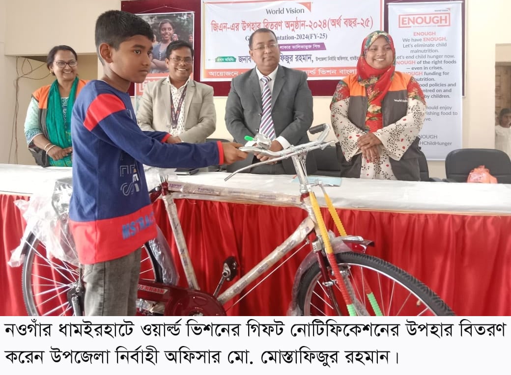 ধামইরহাটে ওয়ার্ল্ড ভিশনের উদ্যোগে ১১৭ শিশুকে জিএন এর উপহার বিতরণ