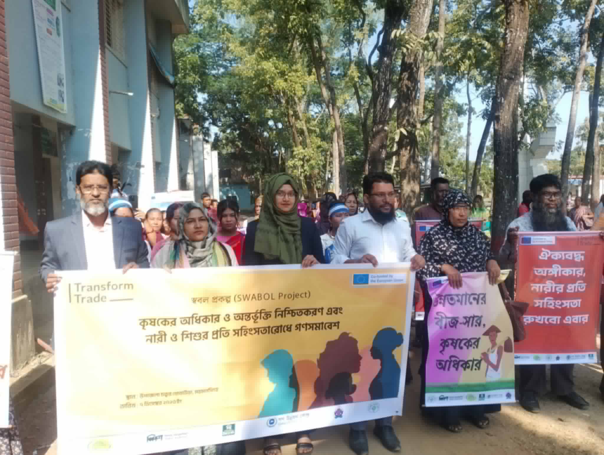 ধোবাউড়া ( ময়মনসিংহ) প্রতিনিধিঃ ময়মনসিংহের ধোবাউড়ায় নারী নির্যাতন প্রতিরোধ পক্ষ ২০২৫ উদযাপন উপলক্ষ্যে “নারী ও কিশোরীর প্রতি ডিজিটাল সহিংসতা প্রতিরোধ করি” এই প্রতিপাদ্যকে সামনে রেখে ১৬ দিনব্যাপী ক্যাম্পেইনের অংশ হিসেবে ৭ ডিসেম্বর ধোবাউড়া উপজেলায় ইউরোপীয় ইউনিয়ন ও ট্রেডক্রাফট এক্স চেঞ্জ এর সহযোগিতায় রুরাল ডেভেলপমেন্ট সংস্থা (RDS) বাস্তবায়নে ‘’SWABOL’’ প্রকল্পের উপজেলা কৃষি পণ্য উৎপাদক অ্যাসোসিয়েশন এর আয়োজনে আলোচনা, গণসমাবেশ, সাংস্কৃতিক অনুষ্ঠান, ধোবাউড়া উপজেলা চত্বরে আয়োজন করা হয়।