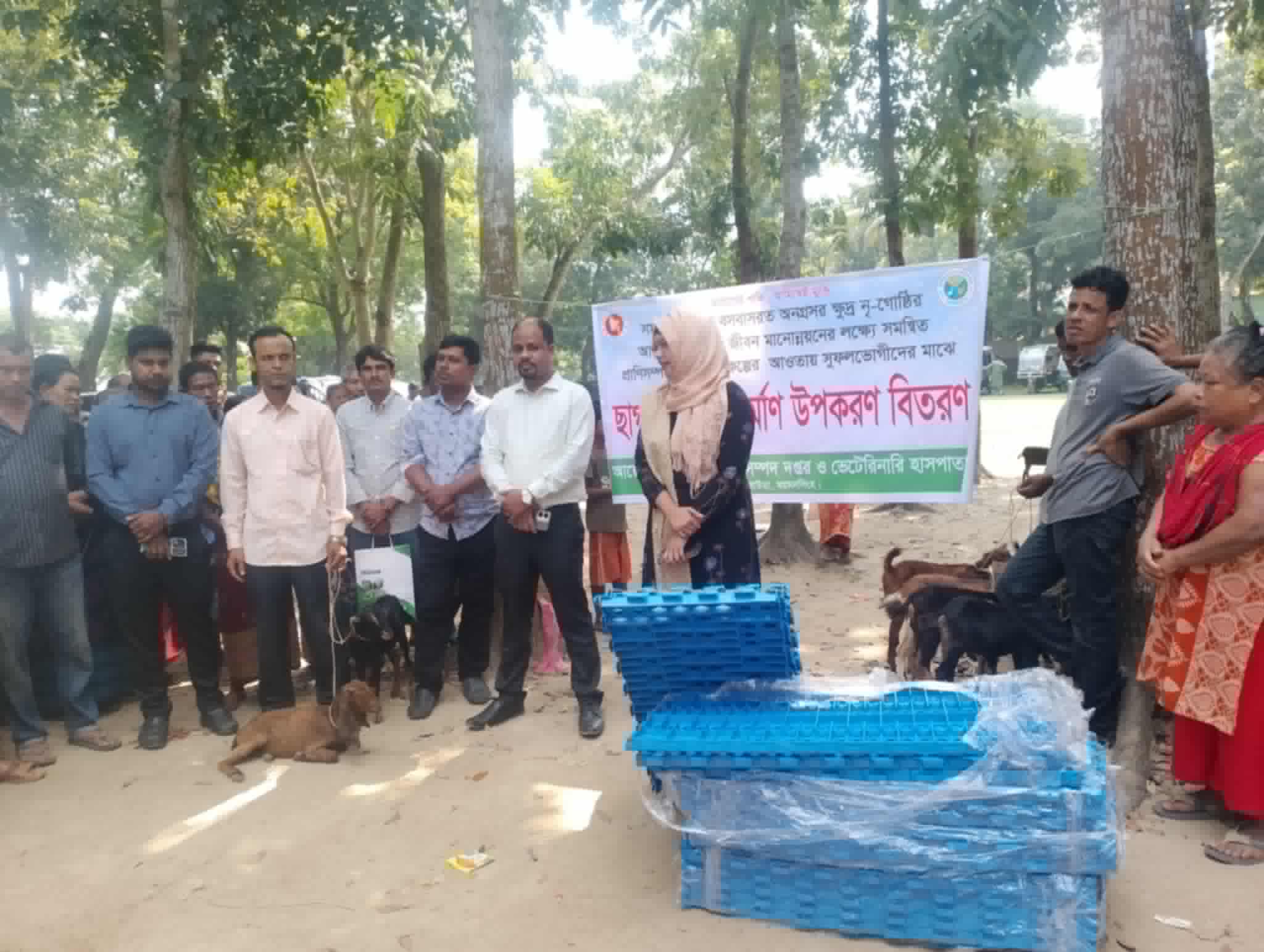 # ধোবাউড়া( ময়মনসিংহ) প্রতিনিধি: ময়মনসিংহের ধোবাউড়ায় সমতল ভূমিতে বসবাসরত অনগ্রসর ক্ষুদ্র নৃ-গোষ্ঠীর আর্থ সামাজিক ও জীবন মান উন্নয়নের লক্ষে সমন্বিত প্রাণি সম্পদ প্রকল্পের আওতায় সুফলভোগীদের মাঝে ছাগল ও গৃহ নির্মাণ উপকরণ বিতরণ করা হয়েছে।