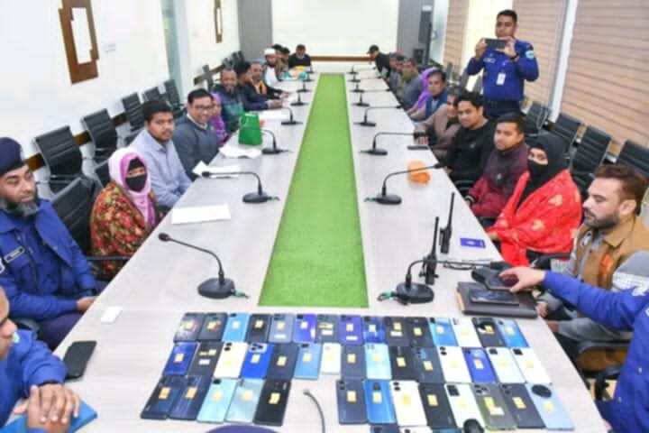 মোঃ ফিরোজ আহমেদ বিশেষ প্রতিনিধিঃ নওগাঁ পুলিশ সুপারের কার্যালয়ের সম্মেলন কক্ষে অদ্য ১২ জানুয়ারি ২০২৬ খ্রিষ্টাব্দ আনুষ্ঠানিকভাবে বিভিন্ন সময়ে উদ্ধারকৃত মোট ৪৬টি হারানো মোবাইল ফোন প্রকৃত মালিকদের কাছে হস্তান্তর করা হয়েছে। উদ্ধারকৃত মোবাইল ফোনগুলো যাচাই-বাছাই শেষে নওগাঁ জেলার সম্মানিত পুলিশ সুপার মোহাম্মদ তারিকুল ইসলাম মহোদয় ভুক্তভোগী মালিকদের হাতে তুলে দেন।