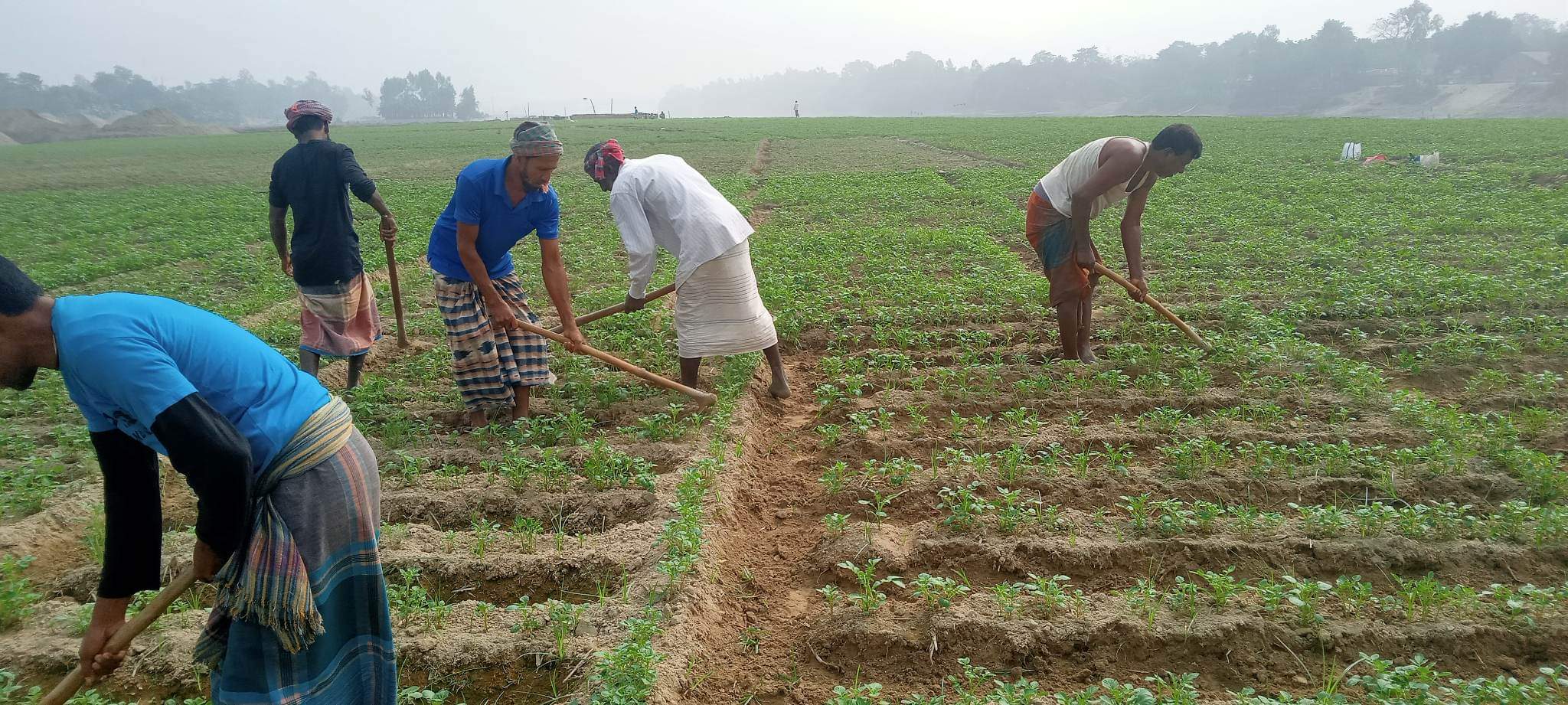 মাঠজুড়ে কেউ খেতে সেচ দিচ্ছেন, কেউ টপ ড্রেসিং (আলু গাছের সারিতে মাটি তুলে দেয়া ও সরিয়ে দেয়ার কাজ) করছেন। আবার কেউ কেউ নিড়ানি দেয়াসহ সার-কীটনাশক প্রয়োগ করছেন। যেন দম ফেলার মতো সময় নেই চাষিদের নেই। আগামী ২০-২২ দিনের মধ্যে আগাম জাতের আলু বাজারে উঠবে বলে জানিয়েছেন সংশ্লিষ্টরা।