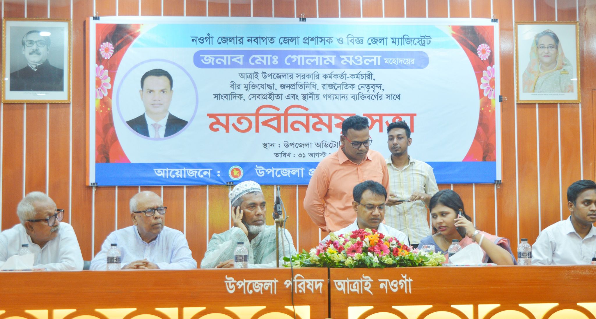 নওগাঁর আত্রাই উপজেলা প্রশাসনের আয়োজনে উপজেলা অডিটরিয়াম হল রুমে বৃহস্পতিবার সকালে(একত্রিশ আগষ্ট) নবাগত জেলা প্রশাসক ও বিজ্ঞ ম্যাজিষ্ট্রেট এর সাথে এলাকার উন্নয়ন ও সমস্যা নিয়ে উপজেলার সকল কমকর্তা-কর্মচারী, জনপ্রতিনিধি, বীর মুক্তিযোদ্ধা, শিক্ষক, সাংবাদিক এবং স্থানীয় গণ্যমান্য ব্যক্তি বর্গের সাথে মতবিনিময় সভা করেছেন।