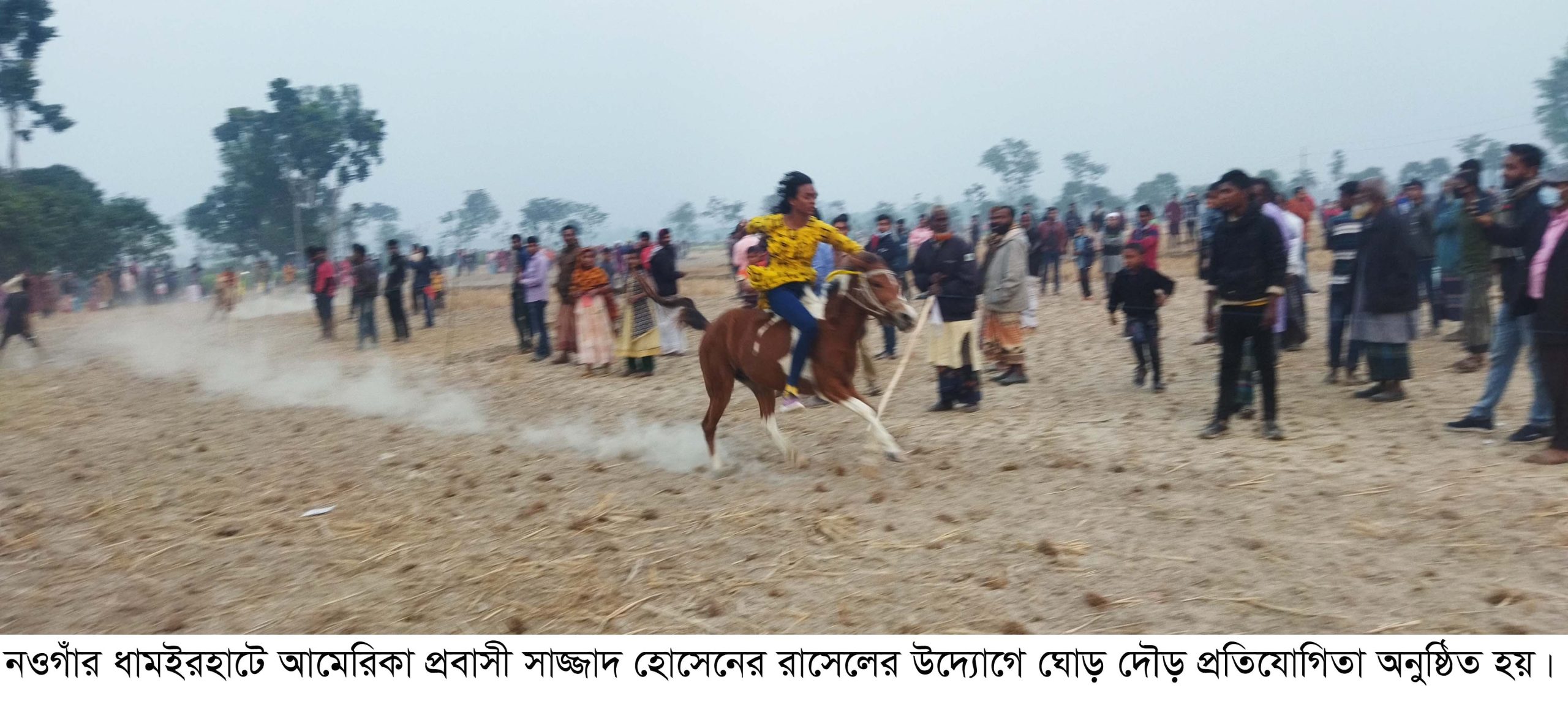 নওগাঁর ধামইরহাটে আমেরিকা প্রবাসী সাজ্জাদ হোসেন রাসেলের উদ্যোগে বিশাল ঘোড় দৌড় প্রতিযোগিতায় চ্যাম্পিয়ন তাসমিনা