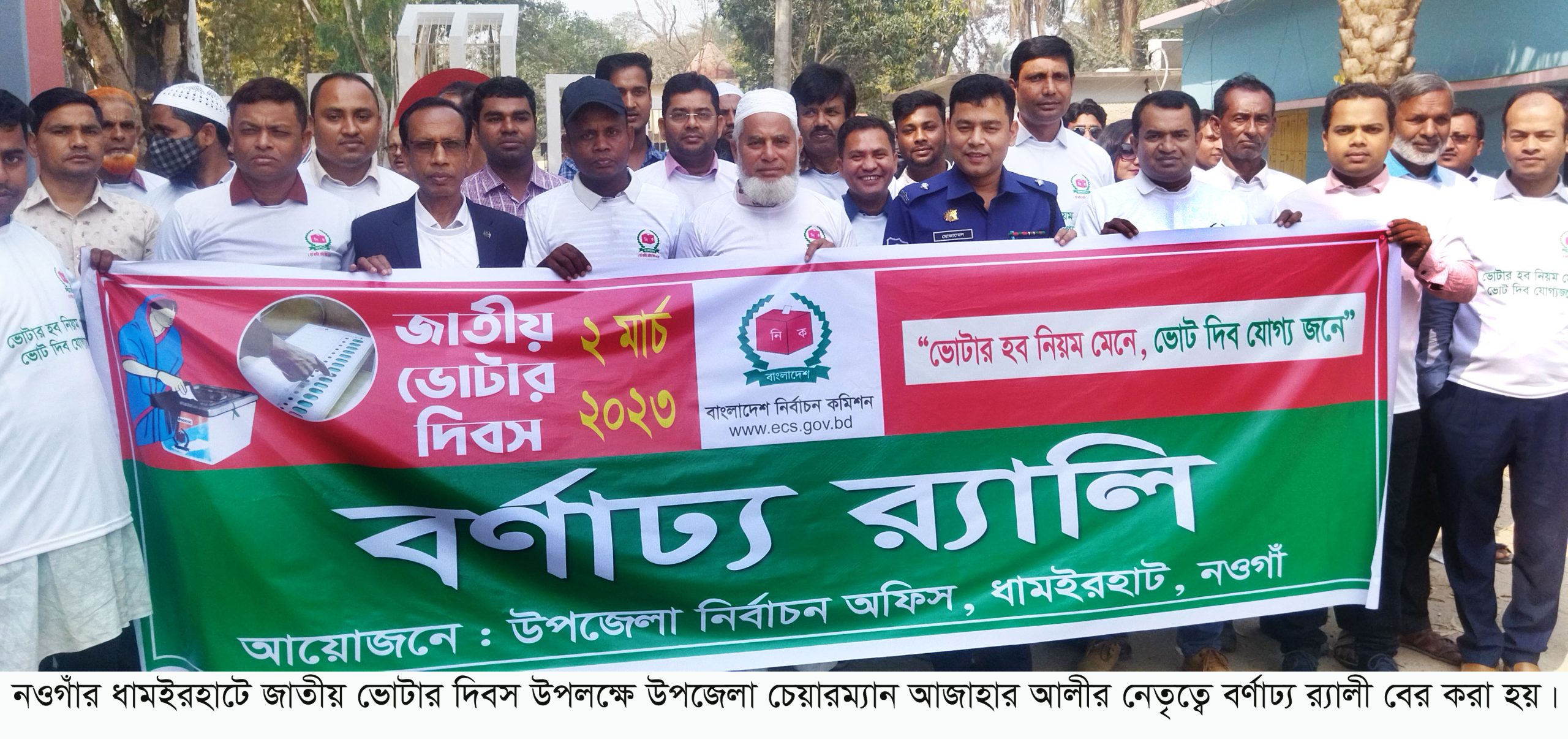 নওগাঁর ধামইরহাটে জাতীয় ভোটার দিবস উপলক্ষে র্যালী ও আলোচনা সভা অনুষ্ঠিত হয়েছে। ‘ভোটার হব নিয়ম মেনে-ভোট দিব যোগ্যজনে’ এই প্রতিপাদ্যকে সামনে রেখে ২ মার্চ সকাল সাড়ে ১০ টায় উপজেলা নির্বাচন অফিসের আয়োজনে দিবসটি উপলক্ষে একটি বর্ণাঢ্য র্যালী উপজেলার বিভিন্ন সড়ক প্রদক্ষিণ করে। পরে উপজেলা নির্বাহী অফিসার মো. আরিফুল ইসলামের প্রতিনিধি উপজেলা যুব উন্নয়ন কর্মকর্তা মো. কামরুজ্জামান সরদারের সভাপতিত্বে উপজেলা পরিষদে আলোচনা সভায় প্রধান অতিথির বক্তব্য রাখেন উপজেলা চেয়ারম্যান মো. আজাহার আলী।