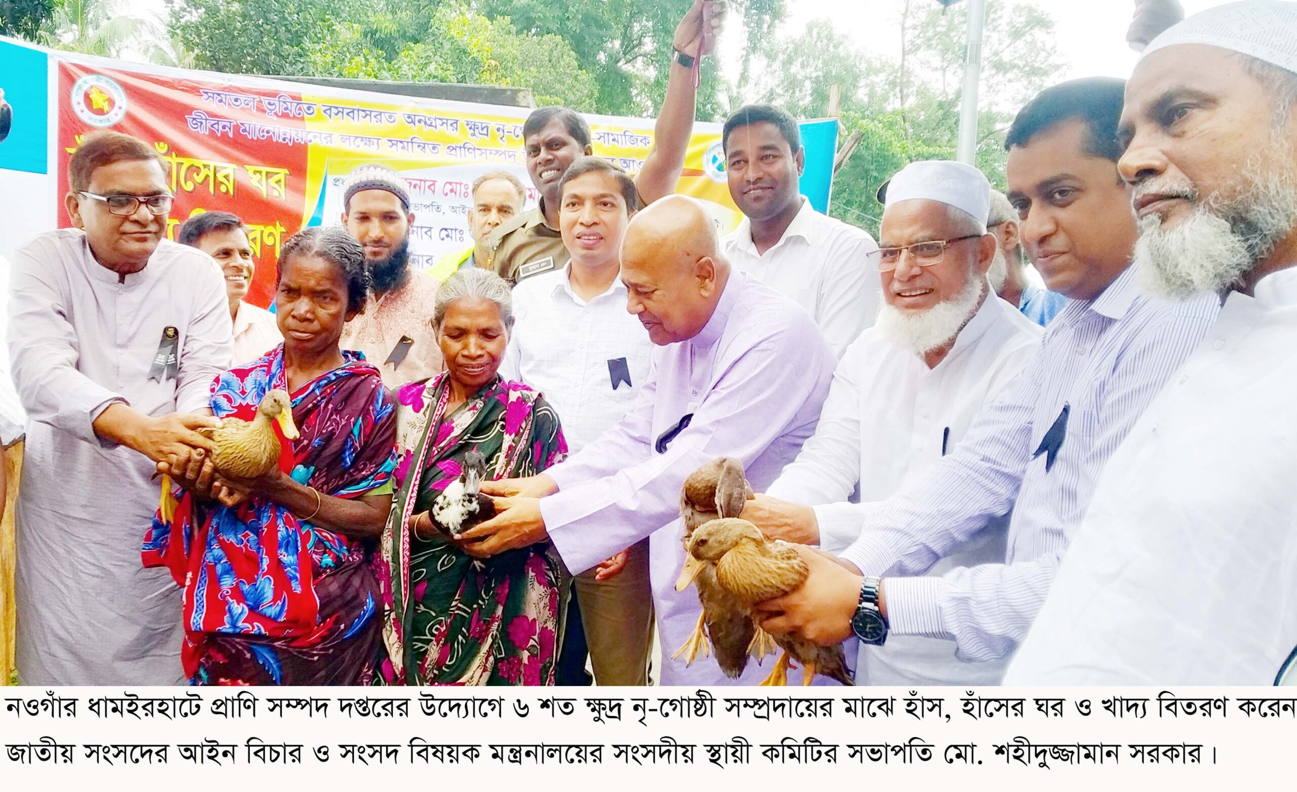 নওগাঁর ধামইরহাটে প্রাণি সম্পদ দপ্তর কর্তৃক ৬শত পরিবারে হাঁস বিতরণ