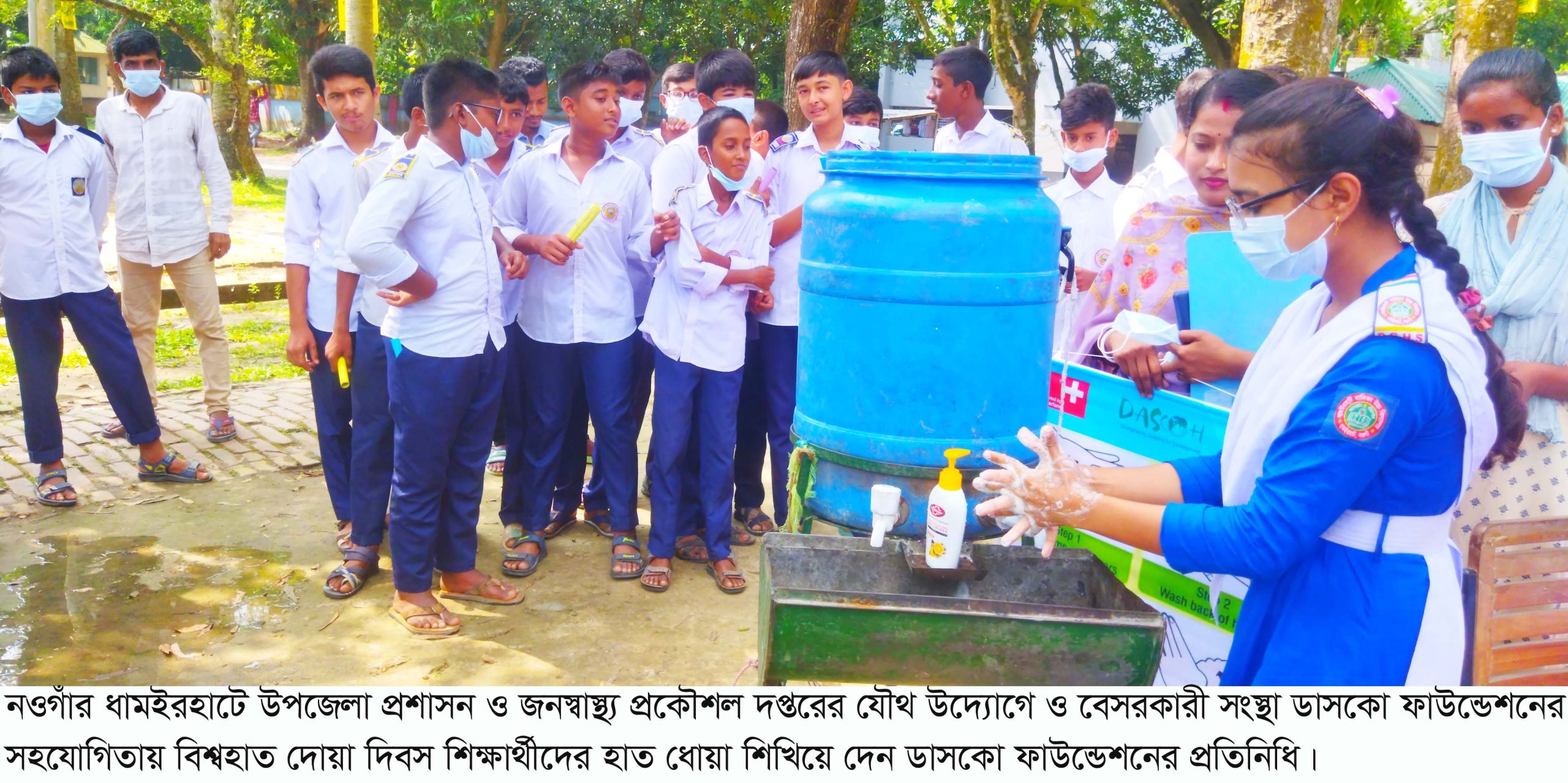 নওগাঁর ধামইরহাটে জাতীয় স্যানিটেশন মাস ও উৎসব মুখর ও জাকজমক পূর্ণ পরিবেশে বিশ্ব হাত ধোয়া দিবস পালিত হয়েছে। ১৯ অক্টোবর বেলা ১১ টায় ধামইরহাট উপজেলা প্রশাসন ও জনস্বাস্থ্য প্রকৌশল দপ্তরের যৌথ উদ্যোগে ও বেসরকারী সংস্থা ডাসকো ফাউন্ডেশনের সহযোগিতায় দিবসটি উপলক্ষে একটি র্যালী উপজেলার প্রধান সড়কগুলো প্রদক্ষিণ করে। ‘হাতের পরিচ্ছন্নতায় এসো সবে এক হই’ এই প্রতিপাদ্যকে সামনে রেখে র্যালী শেষে উপজেলা চত্বরে ইউএনও মো. আরিফুল ইসলামের সভাপতিত্বে আলোচনা সভা অনুষ্ঠিত হয়।