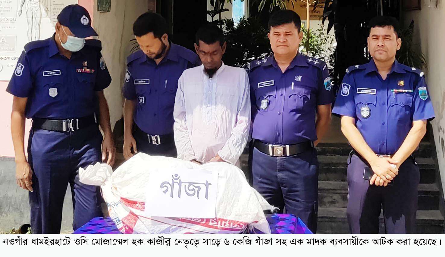 নওগাঁর ধামইরহাটে বিপুল পরিমান গাঁজাসহ এক মাদক ব্যবসায়ীকে আটক করেছে থানা পুলিশ। উপজেলার জাহানপুর ইউনিয়ন এলাকা থেকে সাড়ে ৬ কেজি গাঁজাসহ ওই আসামীকে গ্রেফতার করা হয়।