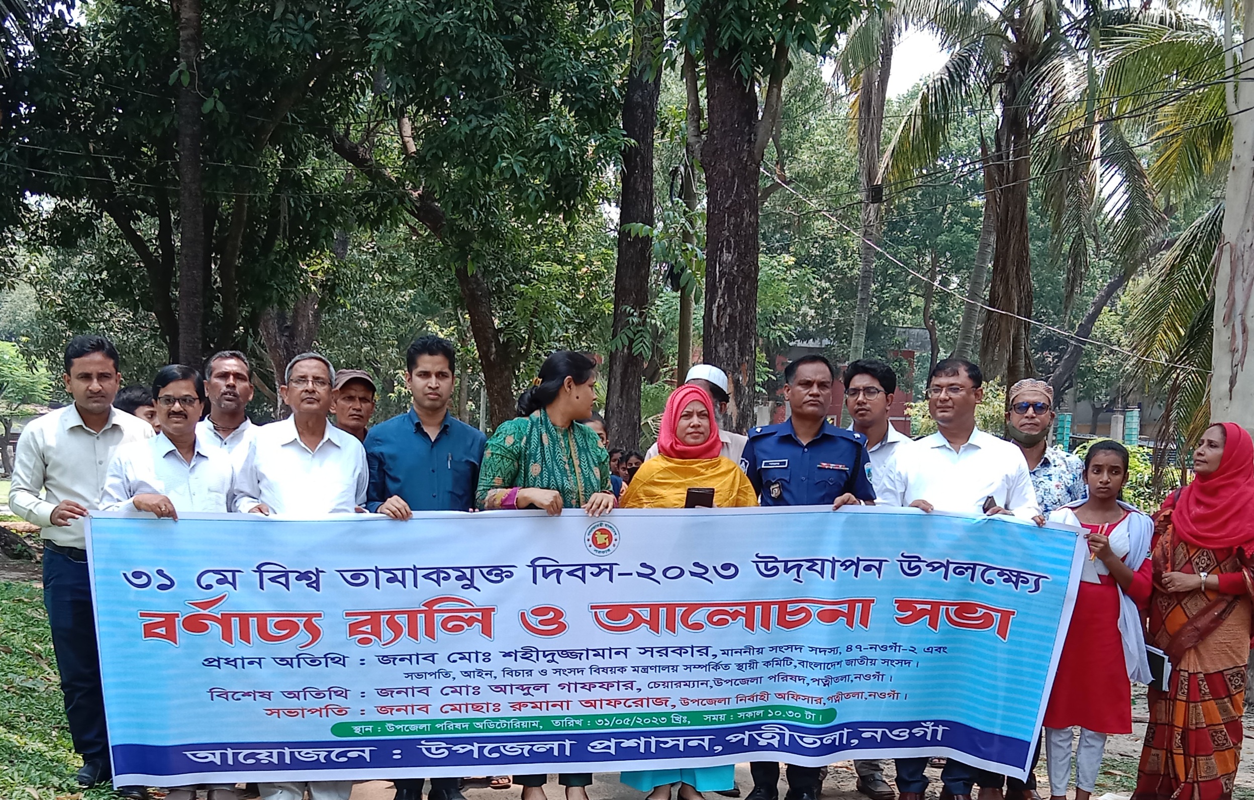 পত্নীতলায় বিশ্ব তামাকমুক্ত দিবস উদযাপন উপলক্ষে উপজেলা প্রশাসনের আয়োজনে বুধবার এক বর্ণনাঢ্য রেলি শেষে উপজেলা পরিষদ অডিটেরিয়াম হল রুমে এক আলোচনা সভা অনুষ্ঠিত হয়েছে।