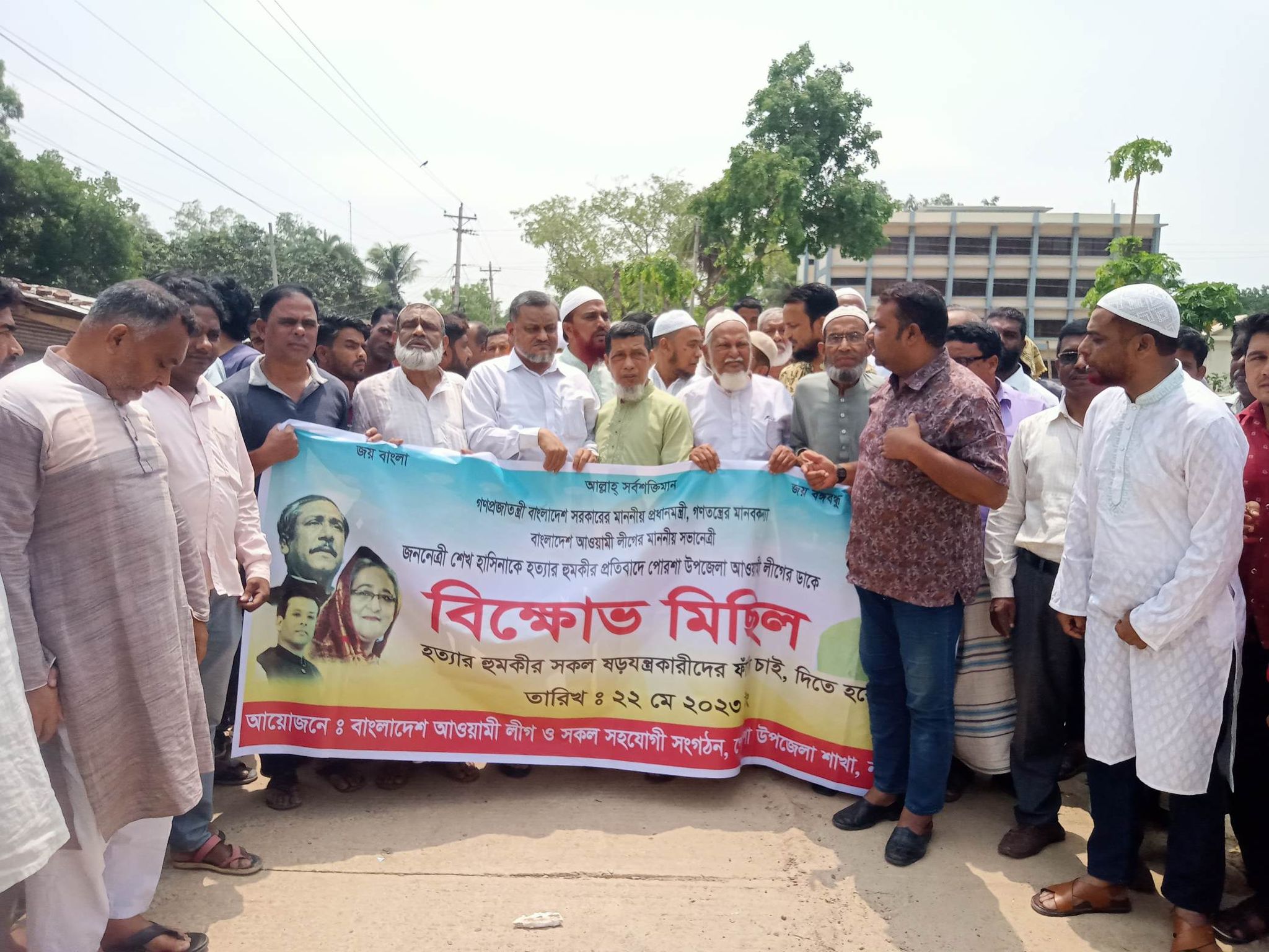 নওগাঁর পোরশায় আওয়ামী লীগের উদ্যেগে বিক্ষোভ মিছিল অনুষ্ঠিত