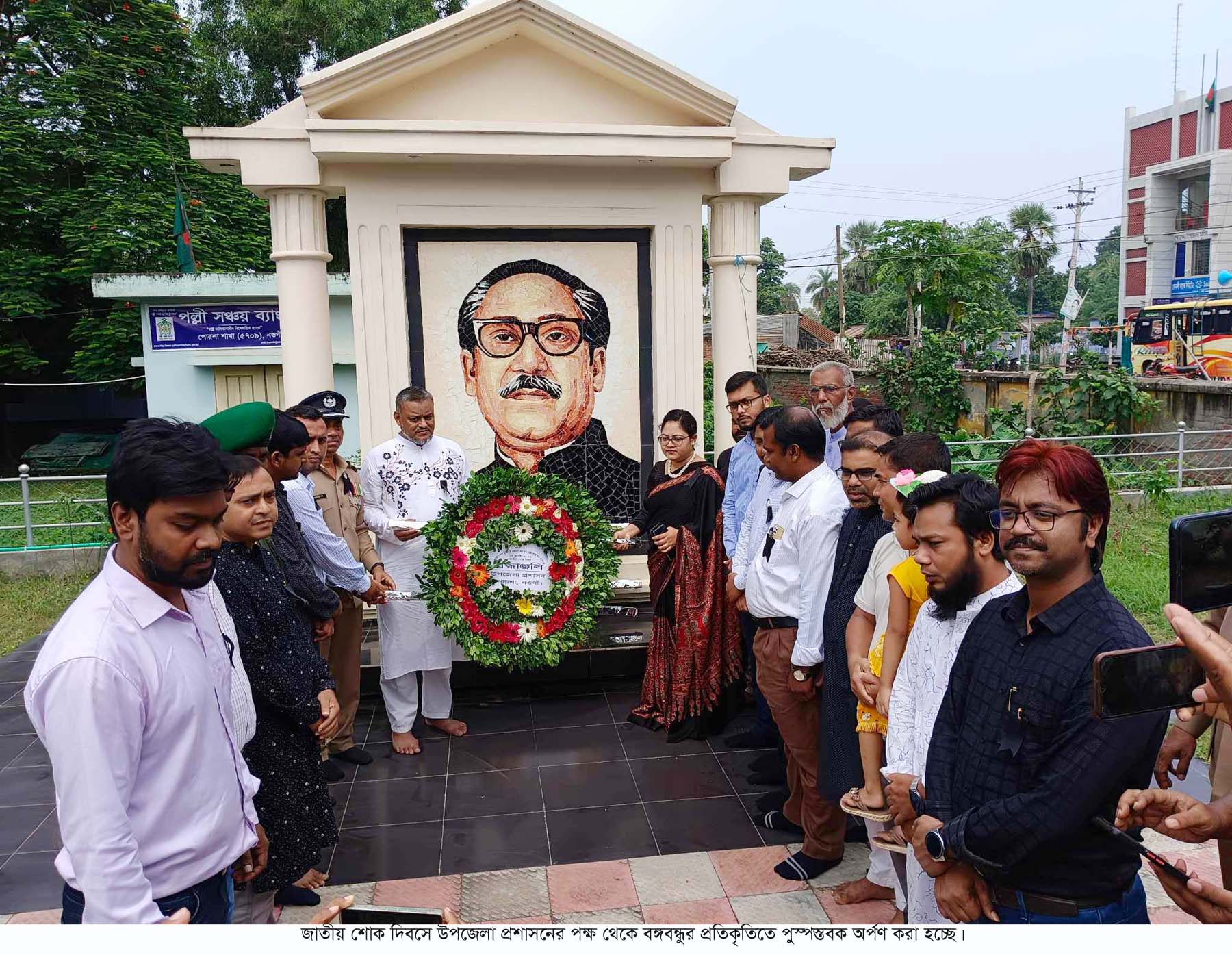 নওগাঁর পোরশায় বঙ্গবন্ধু শেখ মুজিবুর রহমানের ৪৮তম শাহাদত বার্ষিকী ও জাতীয় শোক দিবস বিভিন্ন কর্মসূচির মধ্য দিয়ে পালন করা হয়েছে। দিনটি উপলক্ষ্যে উপজেলা প্রশাসনের আয়োজনে মঙ্গলবার উপজেলা চত্বরে ও মুক্তিযোদ্ধা ভবনে স্থাপিত বঙ্গবন্ধু শেখ মুজিবুর রহমানের প্রতিকৃতিতে পুস্পস্তবক অর্পন, আলোচনা সভা, রচনা ও চিত্রাংকন প্রতিযোগীতা অংশ গ্রহণকারী শিক্ষার্থীদের মাঝে পুরুস্কার বিতরন করা হয়েছে।