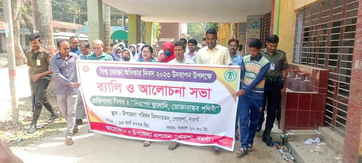 “ নিরাপদ জ্বালানী, ভোক্তাবান্ধব পৃথিবী” প্রতিপাদ্যের আলোকে নওগাঁর পোরশায় র্যালি ও আলোচনা সভার মধ্য দিয়ে বিশ্ব ভোক্তা অধিকার দিবস উদযাপন করা হয়েছে। এ উপলক্ষ্যে বুধবার উপজেলা প্রশাসনের আয়োজনে একটি র্যালি অনুষ্ঠিত হয়। এতে নেতৃত্বদেন ইউএনও সালমা আক্তার।