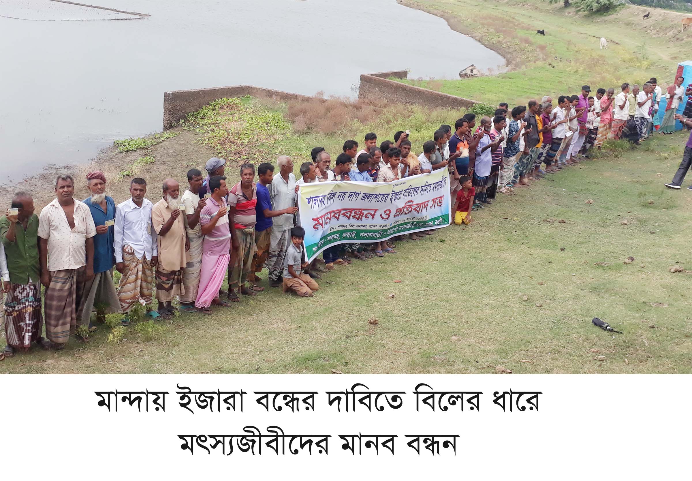 নওগাঁর মান্দায় উন্মুক্ত বিলের ইজারা বাতিলের দাবি জেলেদের মানববন্ধন