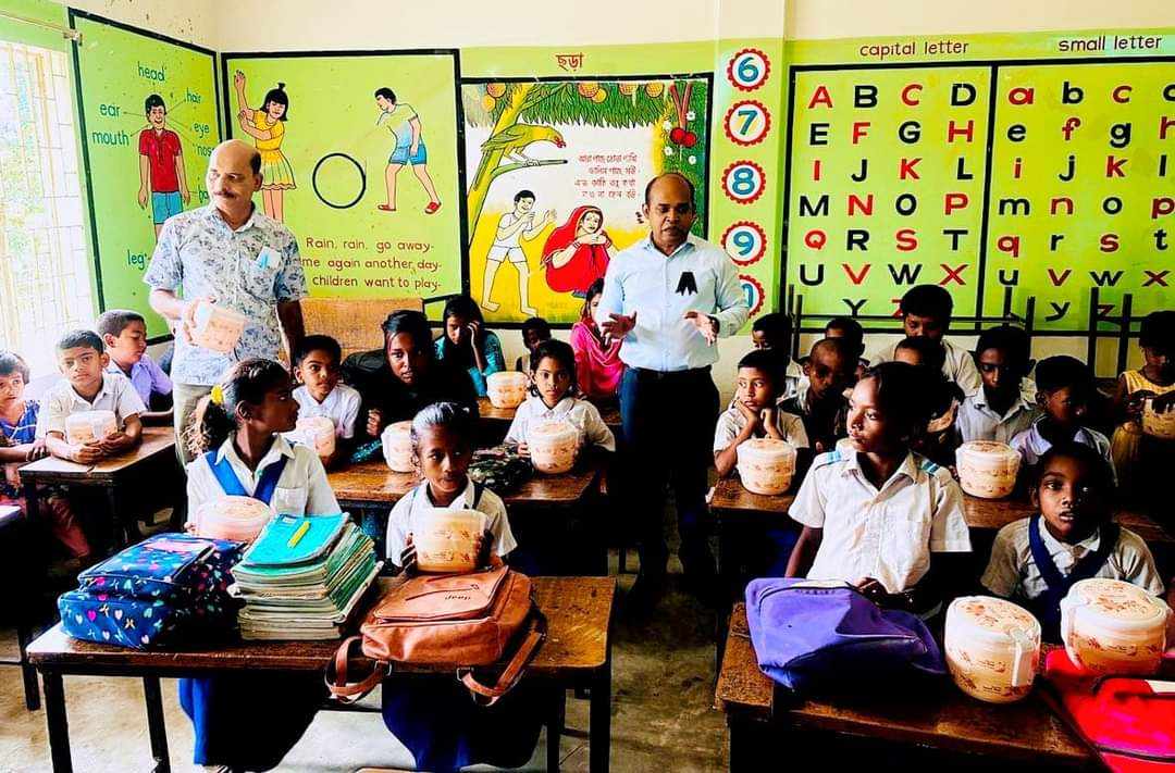 নওগাঁর সাপাহারে নৃ-গোষ্ঠী শিক্ষার্থীদের টিফিন বক্স উপহার দিলেন ইউএনও