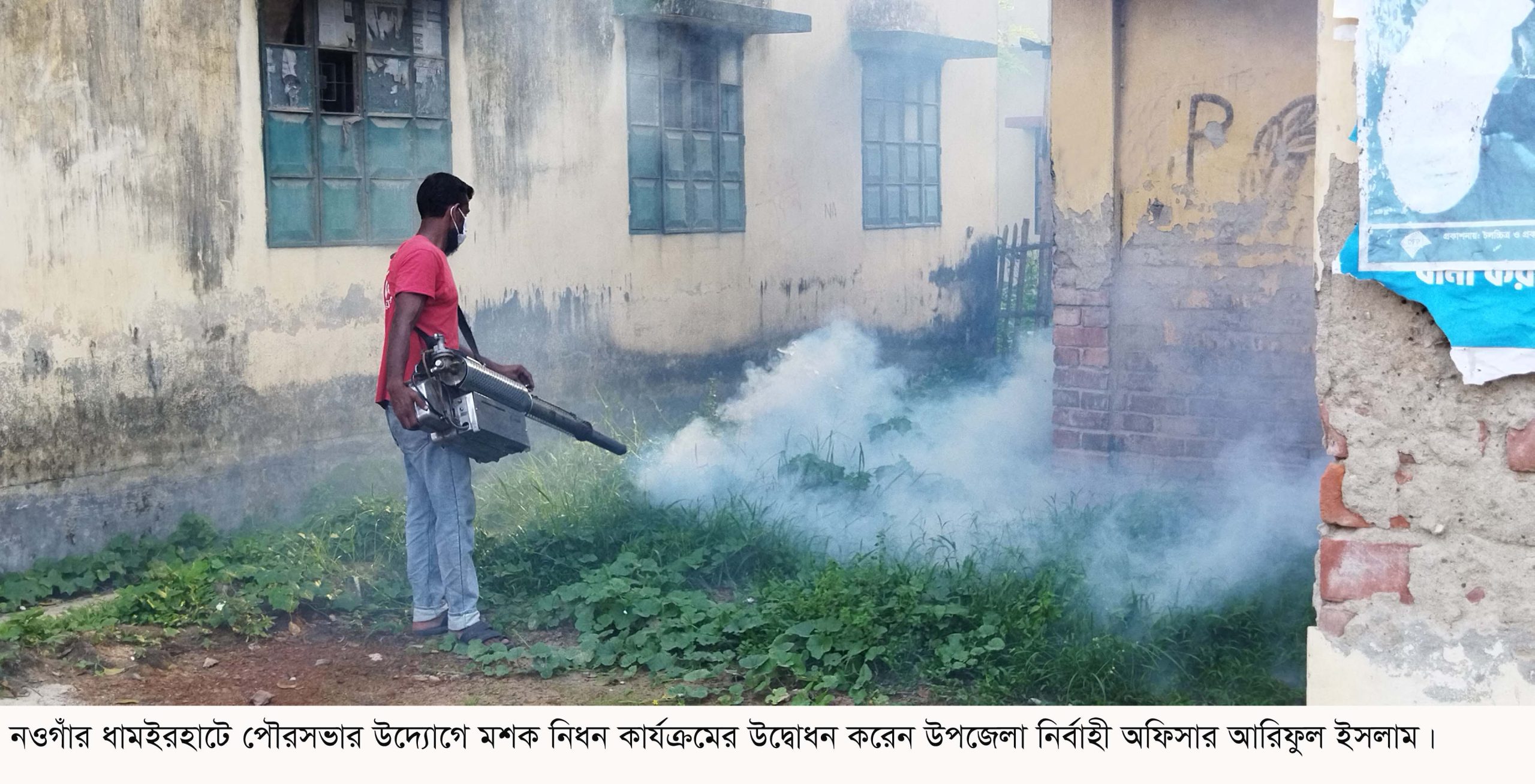 নওগাঁর ধামইরহাটে পৌরসভার উদ্যোগে মশক নিধন কার্যক্রমের উদ্বোধন করা হয়েছে। ১০জুলাই বিকেল ৫ টায় ধামইরহাট উপজেলা চত্বরে এই কার্যক্রমের উদ্বোধন করেন উপজেলা নির্বাহী অফিসার মো. আরিফুল ইসলাম। অত্যাধুনিক ফগার মেশিনের মাধ্যমে উপজেলার গুরুত্বপূর্ণ ও জনসমাগম হওয়া এবং বিভিন্ন ঝোপ-ঝাড়ে, অফিস চত্বরে এই কার্যক্রম চলানো হয়।