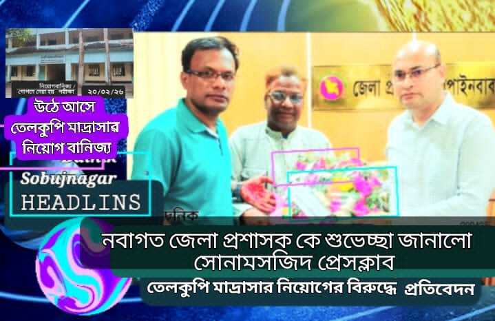 উল্লেখ্য গত ২০ ফেব্রয়ারী ২৬ ইং তারিখে তেলকুপি কলমদর আলিম মাদ্রাসার নিয়োগ পরীক্ষা নিয়ম বহির্ভূত ভাবে নলডুবৱী মাদ্রাসাতে নিয়োগ পরীক্ষা নেয়া হয় যাহার বিরুদ্ধে ৪ই মার্চ ২৬ ইং তারিখে ডিজি/ মাদ্রাসা অধিদপ্তর বরাবর প্রতিবেদন দেয়া হয়েছে যাহার স্বারক নং ০৫,৪৩,৭০০০,০২৬,০৩,০২০,২৫,৫৬ জেলা প্রশাসন থেকে নিশ্চিত করেছে জেলা প্রশাসন।#