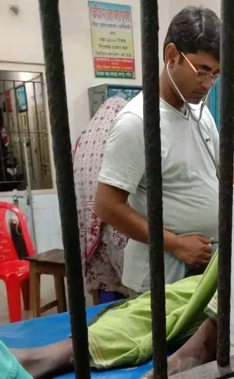 এ বিষয়ে জানতে চাইলে অ্যাম্বুলেন্স ডাইভার আমজাদ বলেন,মঙ্গলবার(৪ঠা অক্টোবর-২২) রাত সাড়ে ৭টার দিকে হাসপাতালের পাশের গ্রাম মোমিনপুর এলাকায় মারামারিতে আহত এক রোগী আসে। ওই সময়ে রোগীর চাপ থাকায় হাসপাতালের স্টাফ ইয়াসমিন আপা আমাকে একটা রোগীর প্রেসার মাপতে বলেছিলেন তাই তিনি ওই রোগীর প্রেসার মেপেছেন শুধু। সে সময় কেউ একজন জানালা দিয়ে ছবি তুলে ফেসবুকে দিয়েছে। আমজাদ সঠিক ভাবে প্রেশার মাপতে পারে না বলে জানিয়ে হাসপাতালের আর এম ও ডাঃ সুরুজ্জামান শামীম বলেন, আমজাদ বেসরকারী অ্যাম্বুলেন্স চালায় এবং হাসপাতাল চত্বরে রোগীর দালালি করে। তাই মাঝে মাঝে নিজ স্বার্থেই কোনো রোগী আসলে তিনি আগ বাড়িয়ে তাদের সঙ্গে পরিচিত হন এবং তাদের সমস্যা সমাধান করিয়ে রোগীর স্বজনদের থেকে কিছু আর্থিক সুবিধা নিতে চায়।