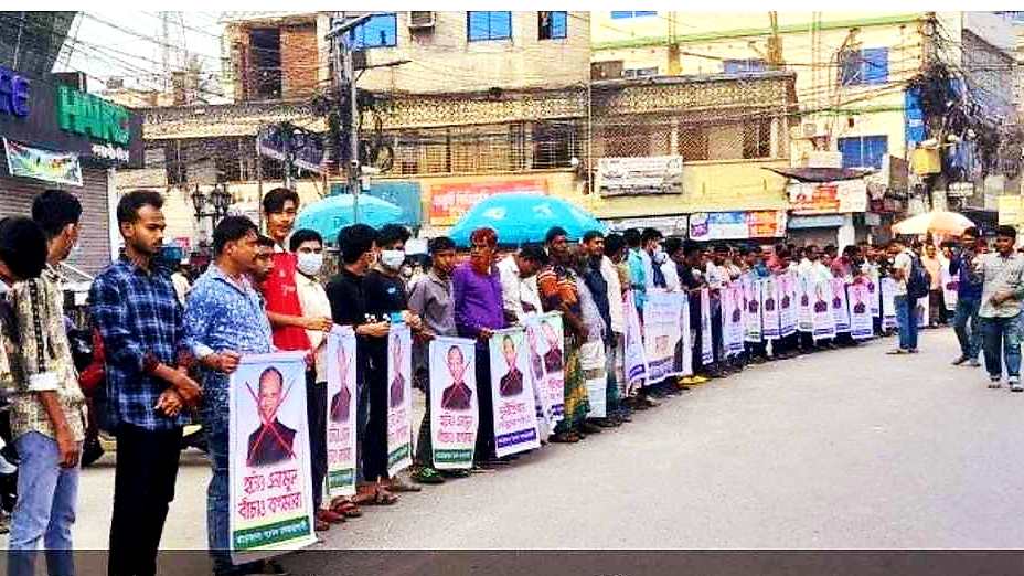 নারী কেলেংকারীর দায়ে অভিযুক্ত রাজশাহী-৪ আসনের এমপি এনামুল হকের শাস্তির দাবিতে মানববন্ধন