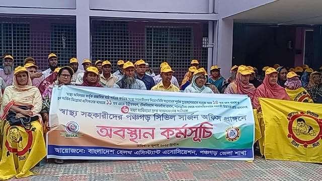 পঞ্চগড়ে স্বাস্থ্য সহকারীদের ৬ দফা দাবীতে অবস্থান
