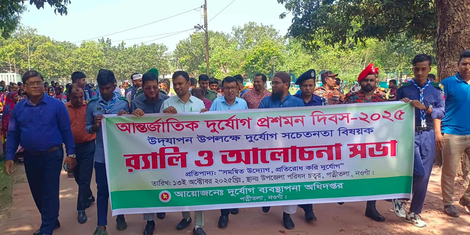 # মাসুদ রানা,পত্নীতলা(নওগাঁ)প্রতিনিধিঃ পত্নীতলা( নওগাঁ) প্রতিনিধি:"সমন্বিত উদ্যোগ, প্রতিরোধ করি দুর্যোগ"এই প্রতিপাদ্য নিয়ে নওগাঁর পত্নীতলায় আন্তর্জাতিক দুর্যোগ প্রশমন দিবসে র্যালি ও আলোচনা সভা অনুষ্ঠিত হয়েছে হয়েছে।