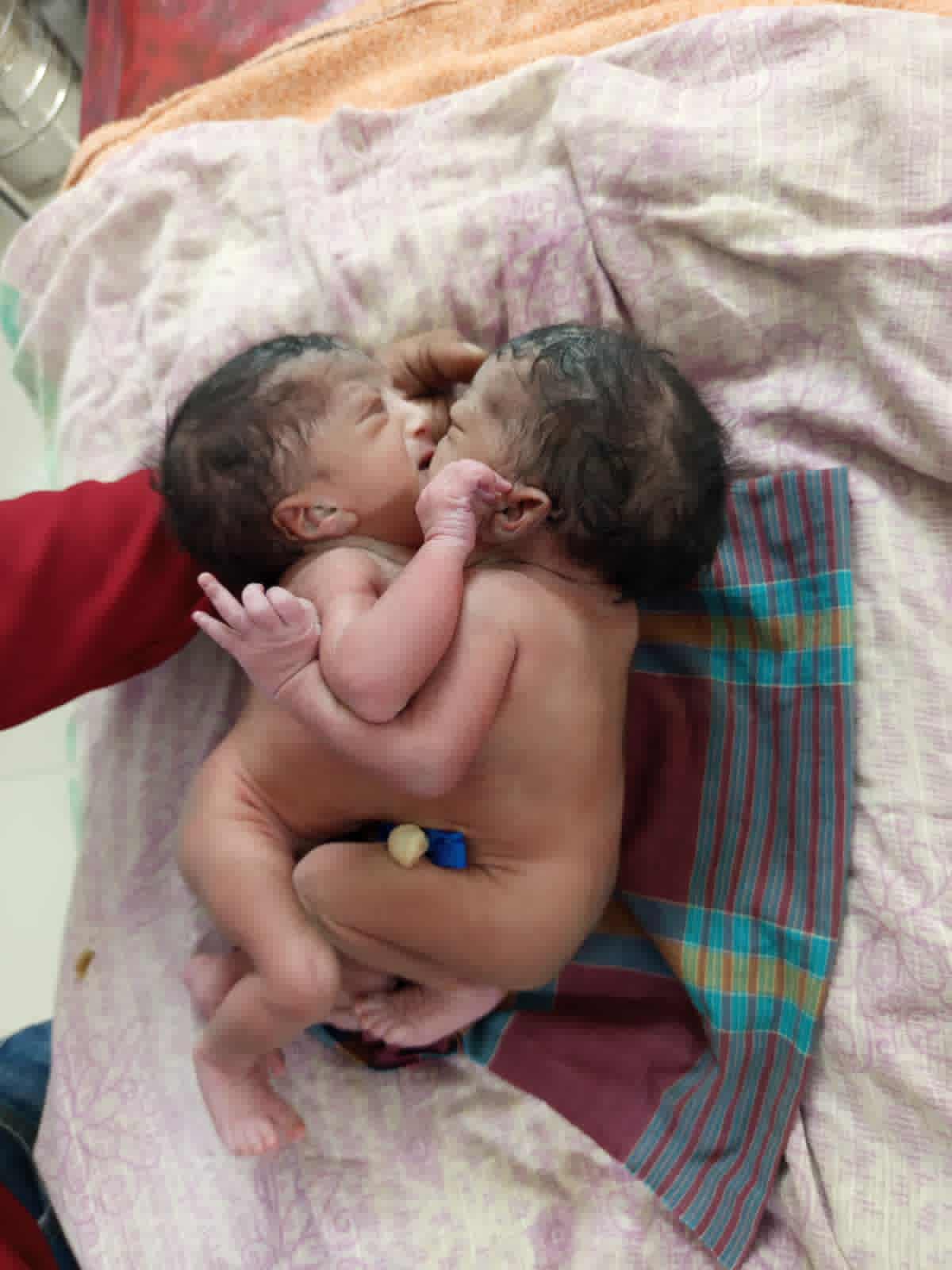 নিউপুপুলার ক্লিনিক এন্ড ডায়াগনস্টিক সেন্টারের পরিচালক রমজান আলী বলেন, প্রসব ব্যাথা নিয়ে গতকাল বৃহস্পতিবার এখানে ভর্তি হোন আজ শুক্রবার দুপুরে রাজশাহী মেডিকেল কলেজের গাইনী বিভাগের সহকারী অধ্যাপক স্ত্রীরোগ প্রস্বতিবিদ্যা বিশেষজ্ঞ ও সার্জন ডা. সুরভি সরকার সফল সিজারিয়ান অপারেশনের মাধ্যমে জোড়া লাগানো জমজ শিশুদুটি ভূমিষ্ট হয়। শিশুদুটি এখন সুস্থ আছে। তবে তাদের উন্নত চিকিৎসার জন্য রাজশাহী মেডিকেল কলেজ হাসপাতালে প্রেরণ করতে হবে। শিশু দুটির পিতা মাতা গরিব অসহায় রাজশাহী যেতে ভয় পাচ্ছেন।#