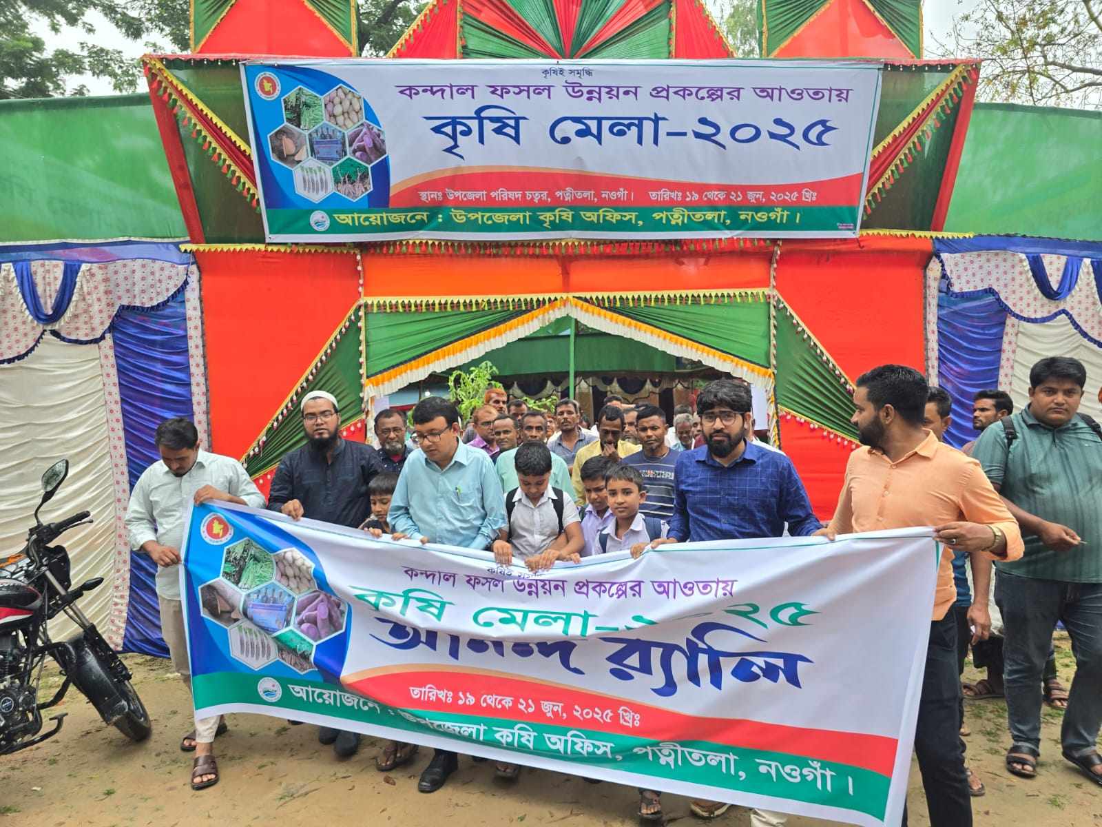 # মাসুদ রানা,পত্নীতলা (নওগাঁ) প্রতিনিধিঃ নওগাঁর পত্নীতলায় কন্দাল ফসল উন্নয়ন প্রকল্পের আওতায় তিন দিনব্যাপী কৃষি মেলার উদ্বোধন করা হয়েছে । বৃহস্পতিবার (১৯ জুন) উপজেলা কৃষি অফিসের আয়োজনে উপজেলা পরিষদ চত্বরে আনুষ্ঠানিক ভাবে এ মেলার উদ্বোধন করেন উপজেলা নির্বাহী অফিসার আলীমুজ্জামান মিলন ।