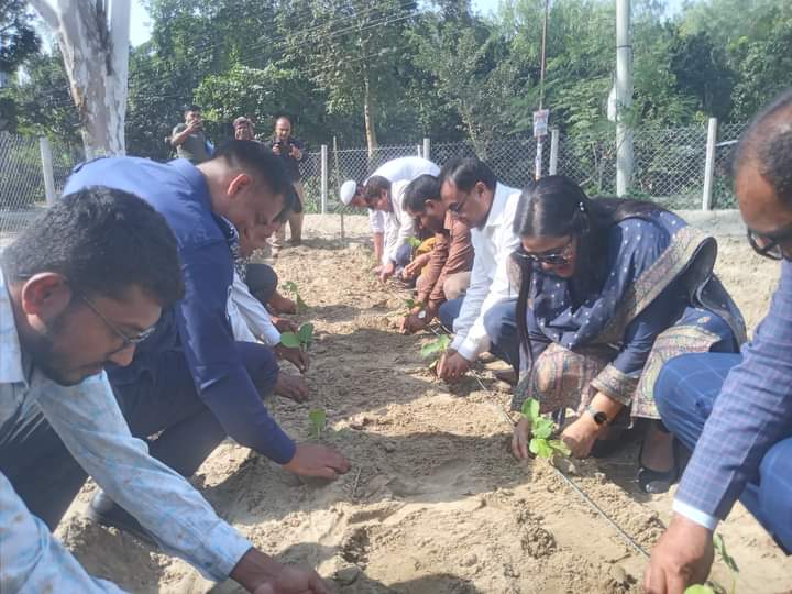 নওগাঁর পত্নীতলা উপজেলা পরিষদ চত্বরের মডেল মসজিদের পাশে পরিত্যাক্ত জমিতে ইউএনও'র নেতৃত্বে কৃষি বিভাগের আয়োজনে বিভিন্ন জাতের সবজির চারা রোপণ করে একটি পুষ্টি বাগান করা হয়েছে। সোমবার দুপুরে এই বাগানে নিজ হাতে চারা রোপণ করেন ইউএনও রুমানা আফরোজ।