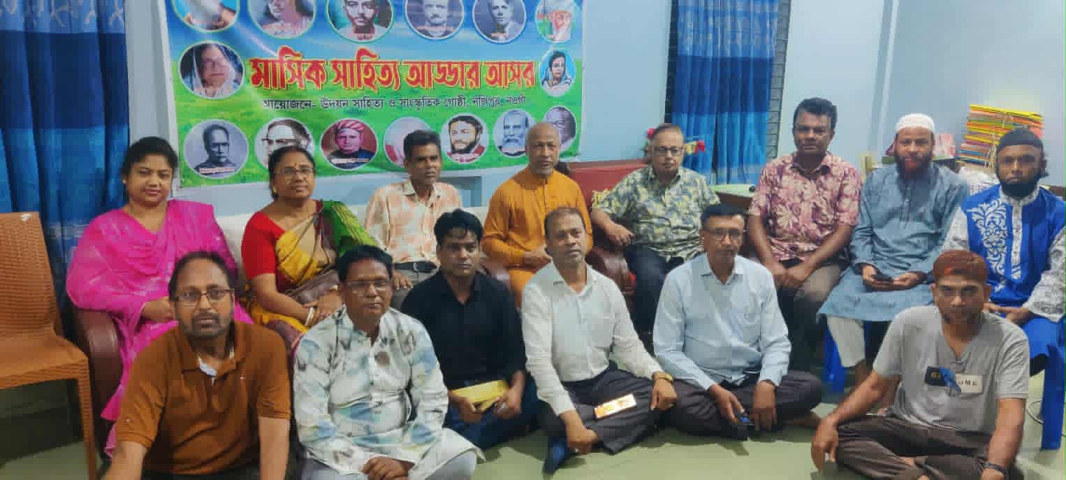 # মাসুদ রানা, পত্নীতলা (নওগাঁ) প্রতিনিধিঃ নওগাঁর পত্নীতলায় নিয়মিত মাসিক সাহিত্য আড্ডার আসর। নজিপুর পৌর এলাকায় প্রত্যয় ভিলায় উদয়ন সাহিত্য ও সাংস্কৃতিক গোষ্ঠীর আয়োজনে সংগঠনের সভাপতি অধ্যাপক ড.আবুল হায়াত ইসমাইলের সভাপতিত্বে ও কবি আহম্মদ হোসেন বাবুর সঞ্চালনায় অনুষ্ঠানে স্বরচিত কবিতা পাঠ করেন কবি অনিমা দেবনাথ,ইব্রাহিম মাসুদ,মারিয়া নূর, মো.আশরাফুল ইসলাম,মো.সানাউল হোসাইন,ও মো.গুলজার রহমান প্রমুখ।