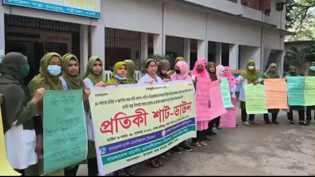 পত্নীতলায় ৮ দফা দাবিতে নার্সদের প্রতিকী শাট-ডাউন