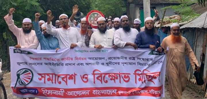 গণমিছিলে উপস্থিত ছিলেন ইসলামী আন্দোলন বাংলাদেশ খুলনা জেলার সভাপতি অধ্যাপক মাওলানা আব্দুল্লাহ ইমরান জেলা সহঃ সভাপতি ও খুলনা ১ আসনের হাতপাখা প্রতীকের সংসদ সদস্য পদপ্রার্থী আলহাজ্ব মাওঃ আবু সাঈদ, জেলা শাখা সেক্রেটারি এস এম রেজাউল করিম সরদার আলহাজ্ব শফিকুল ইসলাম, শাকীল আহমদ রাসেল বটিয়াঘাটা (পশ্চিম) উপজেলা সভাপতি হাফেজ কারিমুল ইসলাম সেক্রেটারি মোঃ ইসমাইল হোসেন কারিমুল ইসলাম মাওলানা মোঃ ইলিয়াস হোসাইন মাওলানা মহসিন আলম মাহবুবী মাওঃ ইনামুল হক, আব্দুল্লাহ আল নোমান,মাওঃ জাহিদুর রহমার মোঃ জাবেদ আলী,মোঃ উজ্জ্বল, হাফেজ মুহাঃ হোসাইন আহমদ,মাওলানা ওলিউর রহমান, মোঃ রাব্বি,মোঃ মর্তুজা,আজম আলী সানা প্রমুখ।