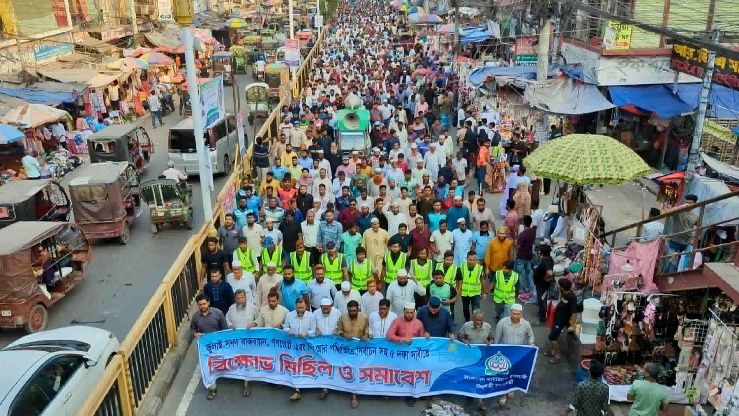নিজস্ব প্রতিবেদক: বাংলাদেশ জামায়াতে ইসলামী রাজশাহী মহানগরীর উদ্যোগে ‘জুলাই সনদের বাস্তবায়ন, গণভোট এবং পি.আর পদ্ধতিতে নির্বাচনসহ ৫ দফা দাবিতে রাজশাহীতে জামায়াতের বিক্ষােভ সমাবেশ অনুষ্ঠিত হয়েছে। শনিবার বিকেল ৩ টায় রাজশাহী নগরীর গণক পাড়া মোড়ে কেন্দ্রীয় কর্মসূচির অংশ হিসেবে বিক্ষােভ সমাবেশ অনুষ্ঠিত হয়েছে।