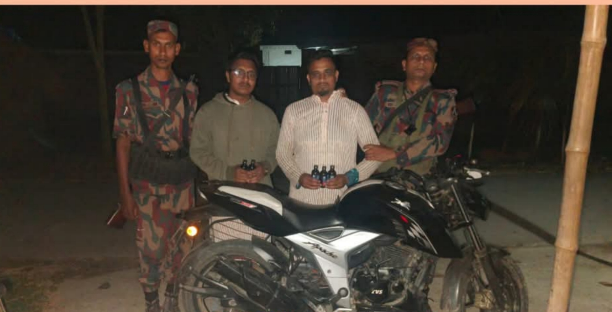 বিজিবি জানায়, বৈরচুনা সীমান্তের বৈরচুনা গ্রামের আলিমউদ্দীন পাড়া থেকে ৫ বোতল ভারতীয় নিষিদ্ধ মাদক ফেনসিডিল ও একটি এ্যাপাচি মোটর সাইকেল সহ তাদের আটক করে বিজিবির টহল দল। পরে তাদের বিরুদ্ধে পীরগঞ্জ থানায় মামলা করা হয়।