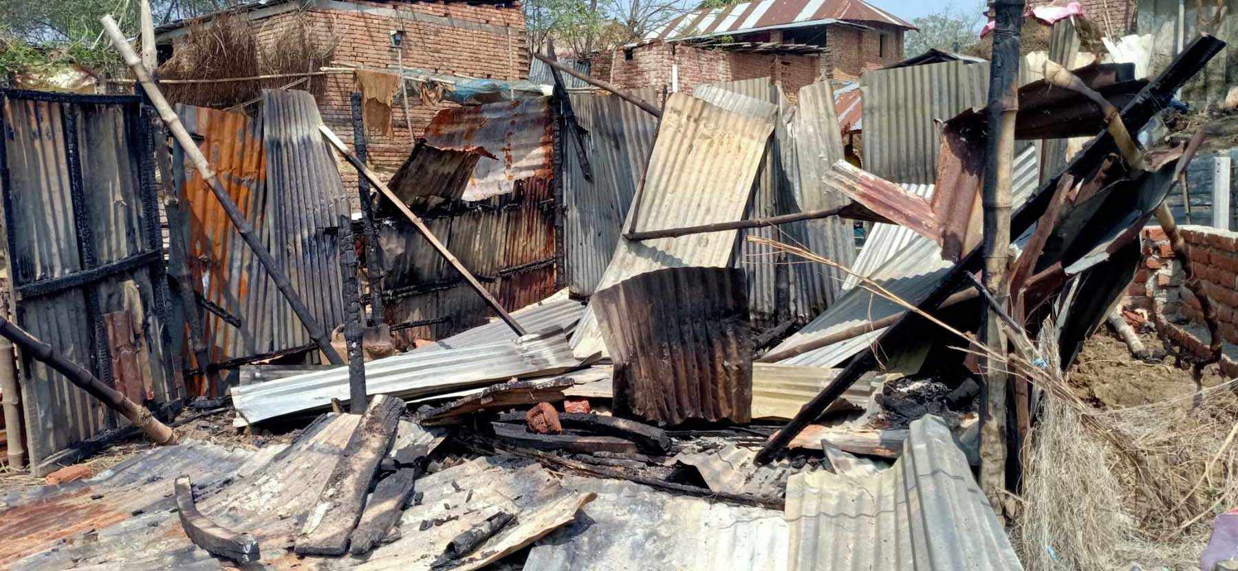 পোরশায় দুর্বৃত্তদের আগুনে ঘর পুড়ে ছাই