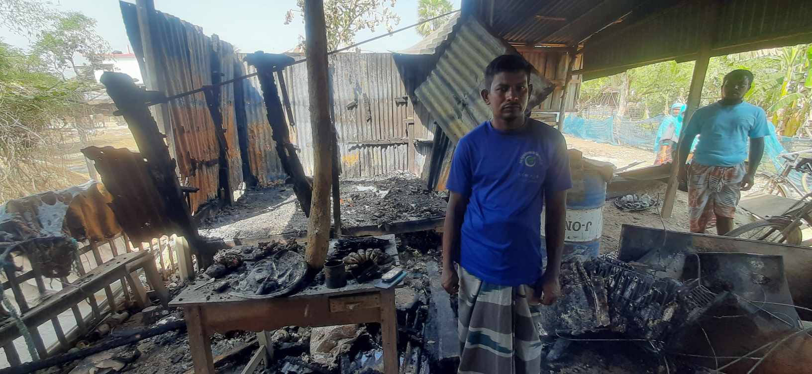 মনিরুল ইসলাম জানান, কি কারনে আগুন লাগানো হয়েছে তা তিনি বলতে পাচ্ছেন না। এবিষয়ে তিনি থানায় অভিযোগ করবেন বলে জানান। #