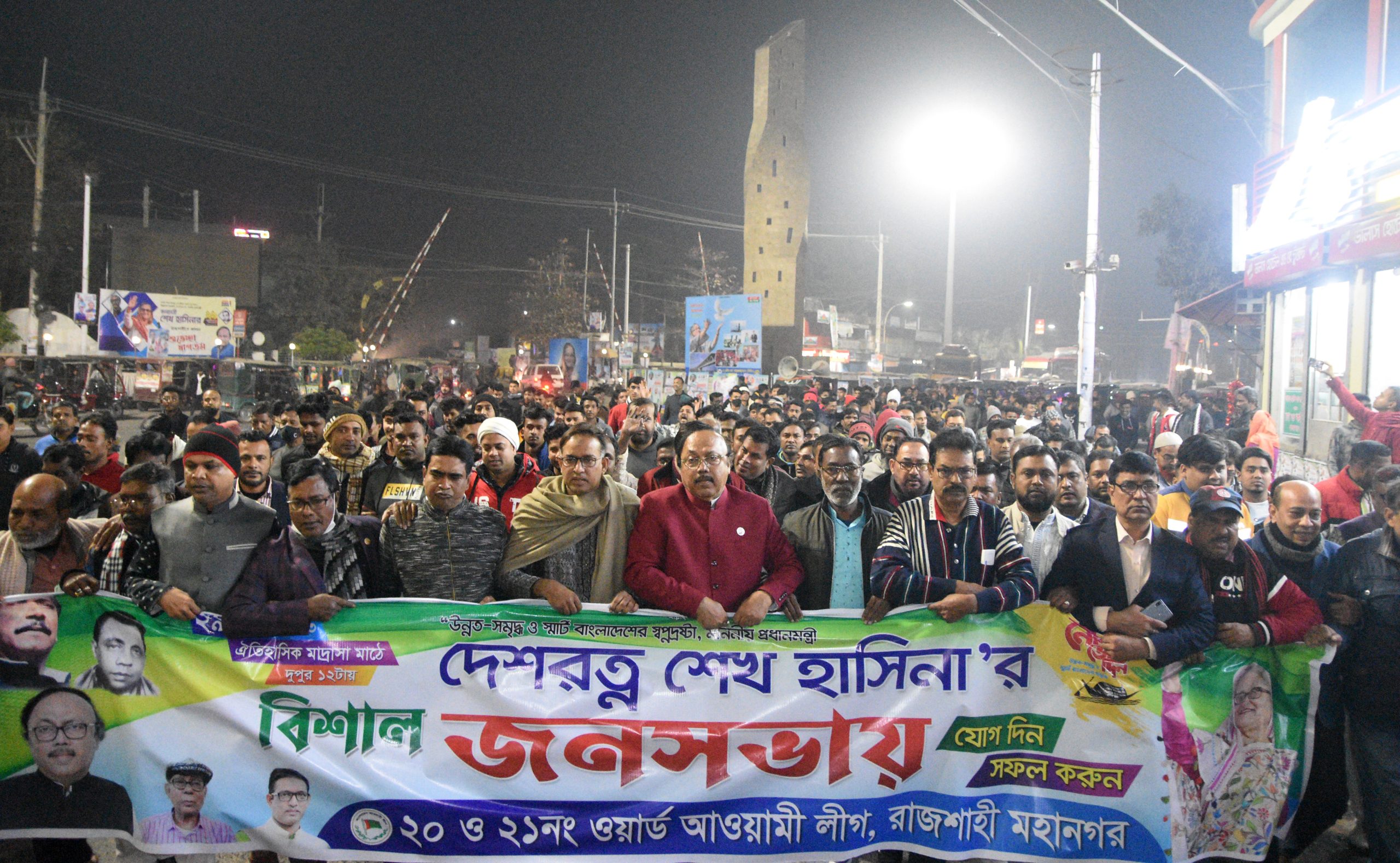 প্রধানমন্ত্রীর জনসভা সফল করতে রাজশাহী মহানগরীর সকল ওয়ার্ডে প্রচার মিছিল