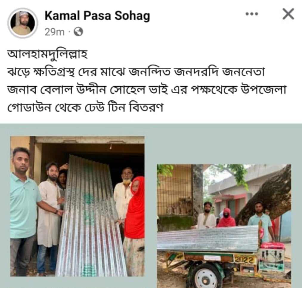 প্রধানমন্ত্রীর ত্রাণ নিয়ে উপজেলা চেয়ারম্যানের ব্যক্তিগত প্রচারণা