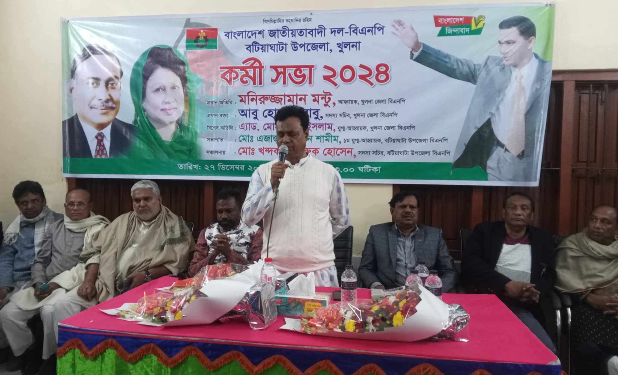 # মোঃ মিজানুর রহমান, বটিয়াঘাটা প্রতিনিধিঃ বাংলাদেশ জাতীয়তাবাদী দল-বিএনপি বটিয়াঘাটা উপজেলা শাখা খুলনা কর্তৃক আয়োজিত কর্মী সভা ২৭ ডিসেম্বর শুক্রবার বিকেল তিন টায় বটিয়াঘাটা সদর ইউনিয়ন পরিষদ হলরুমে অনুষ্ঠিত হয়।