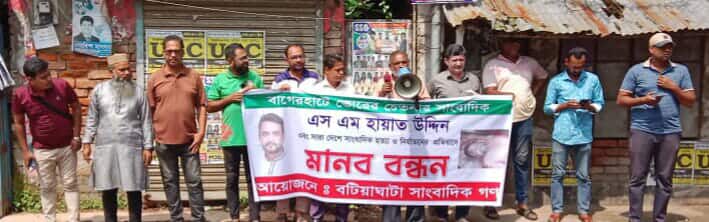 বটিয়াঘাটা দৈনিক ভোরের চেতনার সাংবাদিক এম হায়াত উদ্দিন হত্যার প্রতিবাদে মানববন্ধন