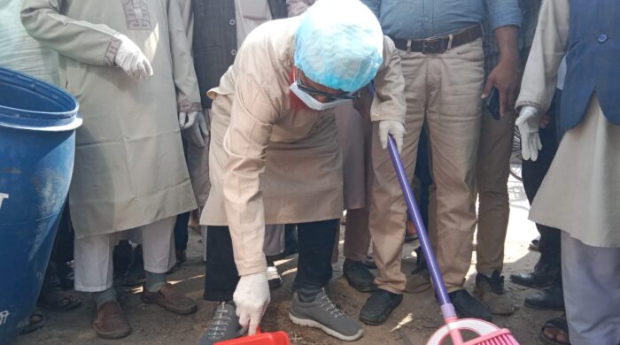 বদরগঞ্জে ঝাড়ু দিয়ে রাস্তা পরিস্কার করলেন সংসদ সদস্য