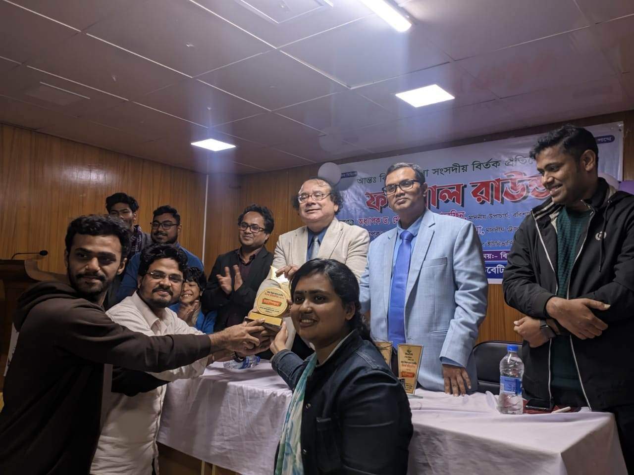 বিতর্কে রাষ্ট্রবিজ্ঞান বিভাগের হয়ে অংশগ্রহণ করেন জয়ব্রত রায় (প্রধানমন্ত্রী), মাসুম মাহমুদ (মন্ত্রী) , উপমা দত্ত (সংসদ সদস্য) এবং বায়োকেমিস্ট্রিও বায়োটেকনোলজি বিভাগে হয়ে অংশগ্রহণ করেন সুমাইতা আনজুম (বিরোধী দলীয় নেতা), ঐশী মন্ডল (উপনেতা), মৃত্তিকা রহমান রুপা (সংসদ সদস্য) ডিবেটর অফ দ্যা ফাইনাল মনোনীত হয়েছেন রাষ্ট্রবিজ্ঞান বিভাগের শিক্ষার্থী মাসুম মাহমুদ।#