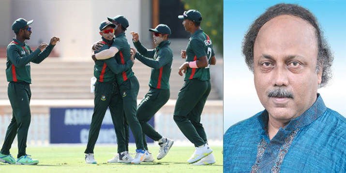 থমবারের মতো যুব এশিয়া কাপের শিরোপা জিতলো বাংলাদেশ। ২০২৩ অনূর্ধ্ব-১৯ এশিয়া কাপের ফাইনালে চ্যাম্পিয়ন হওয়ার গৌরব অর্জন করায় বাংলাদেশ অনূর্ধ্ব-১৯ ক্রিকেট দলকে প্রাণঢালা শুভেচ্ছা ও অভিনন্দন জানিয়েছেন বাংলাদেশ আওয়ামী লীগের সভাপতিমন্ডলীর সদস্য ও রাজশাহী সিটি কর্পোরেশনের মাননীয় মেয়র এ.এইচ.এম খায়রুজ্জামান লিটন। রবিবার (১৭ ডিসেম্বর) এক অভিনন্দন বার্তায় এই অভিনন্দন জানান রাসিক মেয়র।