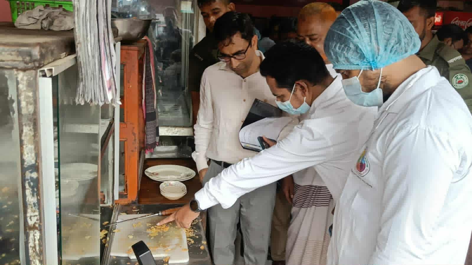 # বাগমারা প্রতিনিধিঃ রাজশাহীর বাগমারায় বাংলাদেশ নিরাপদ খাদ্য কর্তৃপক্ষের পক্ষ থেকে উপজেলার দুটি খাবার হোটেলে ভ্রাম্যমান অভিযান পরিচালিত হয়েছে। অস্বাস্থ্যকর ও নোংরা পরিবেশ সহ স্বাস্থ্যঝুঁকি সৃষ্টি করবে এমন খাদ্য তৈরি ও পরিবেশন এবং মেয়াদ উত্তীর্ণ বিভিন্ন পণ্য ফ্রিজে মজুদ করার অপরাধে অভিযুক্ত করা দুটি হোটেল মালিককে।