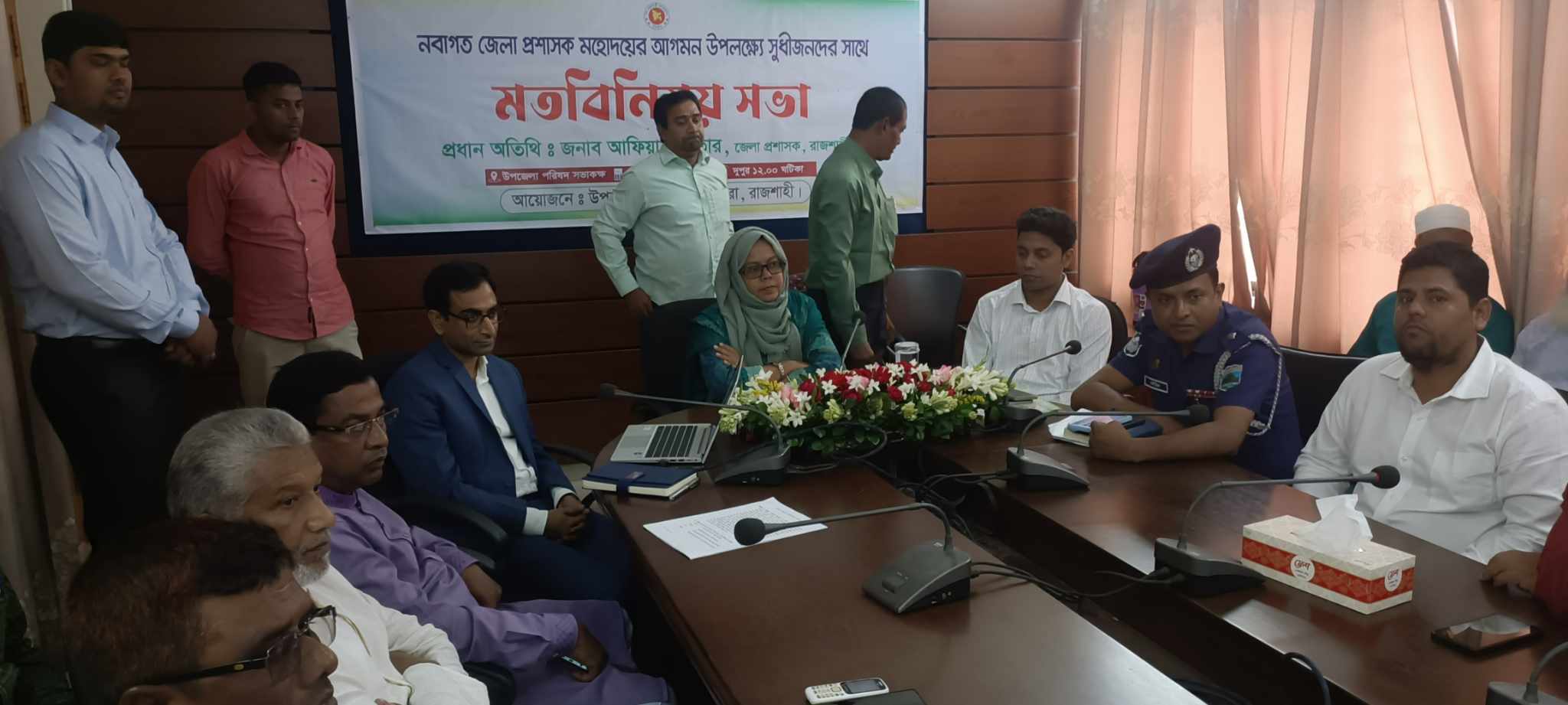 মতবিনিময় কালে নবাগত জেলা প্রশাসক আফিয়া আখতার সরকারি বিভিন্ন দপ্তরের কর্মকর্তাদের সাথে কথা বলেন। এছাড়া তিনি স্থানীয় সংবাদকর্মীদের মাধ্যমে উপজেলার সরকারি দপ্তর ও আইন শৃংখলা বিষয়ে খোঁজ খবর নেন। এলাকার উন্নয়নের জন্য স্থানীয় রাজনৈকি নেতাকর্মীদের সরকারি কর্মকর্তাদের সহযোগীতা করার জন্য আহবান জানান।