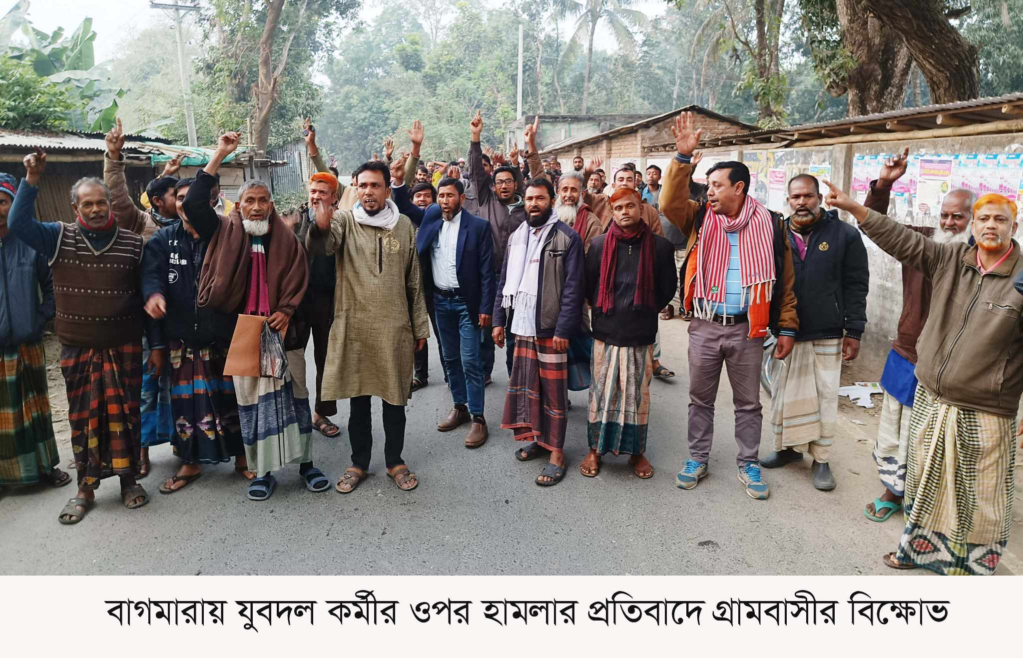 বাগমারায় যুবদল কর্মীর ওপর হামলার প্রতিবাদে গ্রামবাসীর বিক্ষোভ
