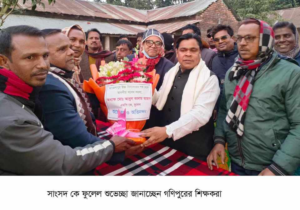 বুধবার গণিপুর ইউনিয়নের মোহনগঞ্জ, মাদারিগঞ্জ, হাসনীপুর, আচিনঘাট, আক্কেলপুরসহ বিভিন্ন গ্রাম ও বাজার এলাকায় ঘুরে ঘুরে জনসাধারণের সঙ্গে সাক্ষাত করেন। বিভিন্ন মোড়ে মোড়ে সাংসদ কে ফুলেল শুভেচ্ছা জানান স্থানীয় বিভিন্ন শ্রেনী ও পেশার মানুষ।